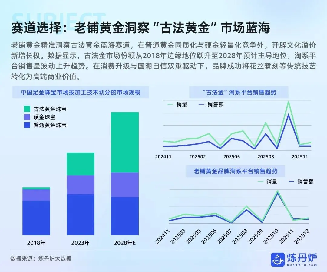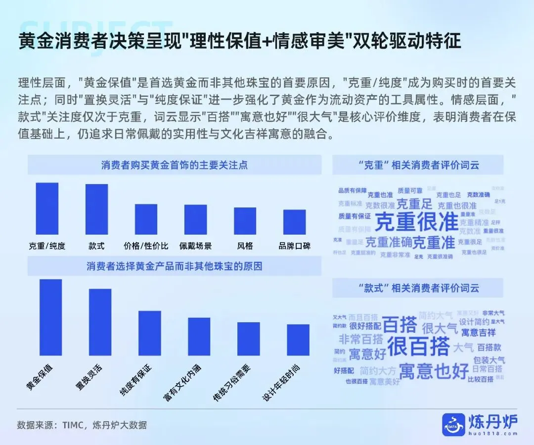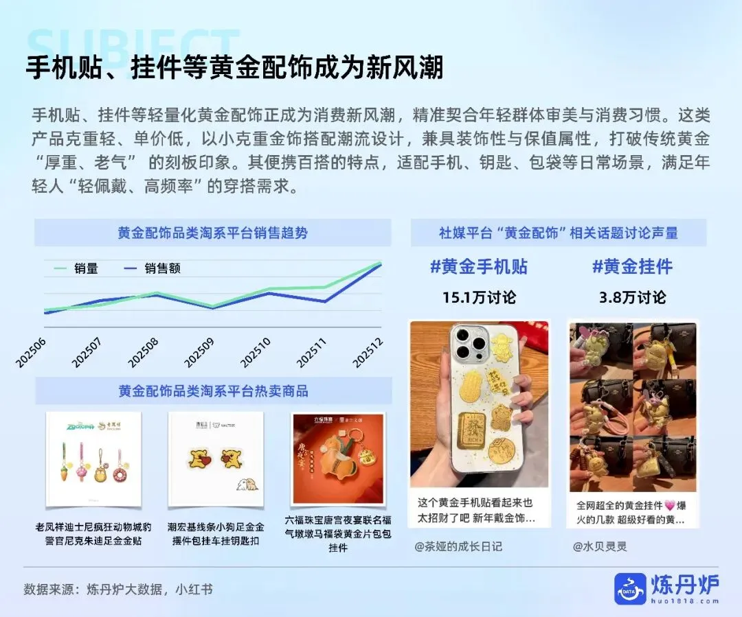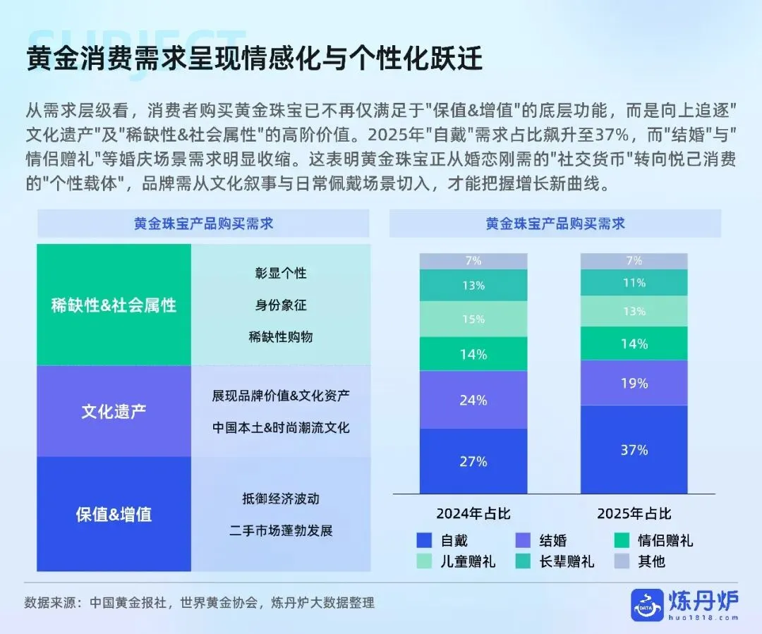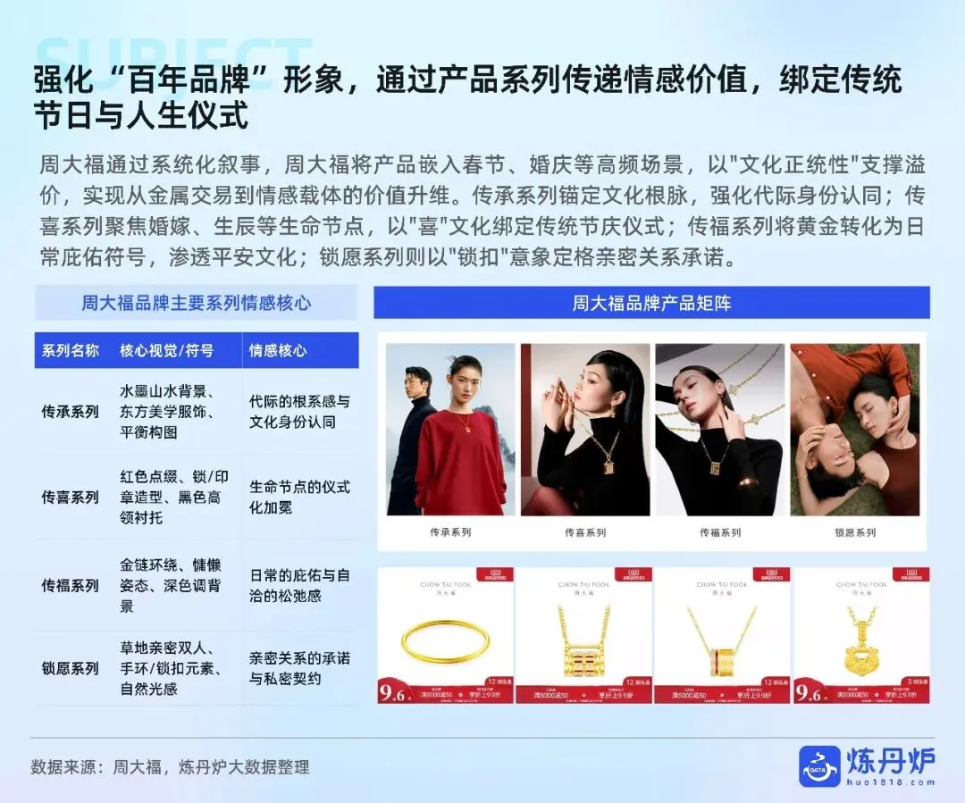 老铺黄金凭非遗古法+足金镶钻站稳奢侈高价带,周大福以全价格带IP联名横扫大众,品牌通过文化叙事、明星同款、跨界潮玩完成从“卖克重”到“卖情绪”的跃迁,黄金消费正式迈入悦己、社交、收藏三位一体的新时代。