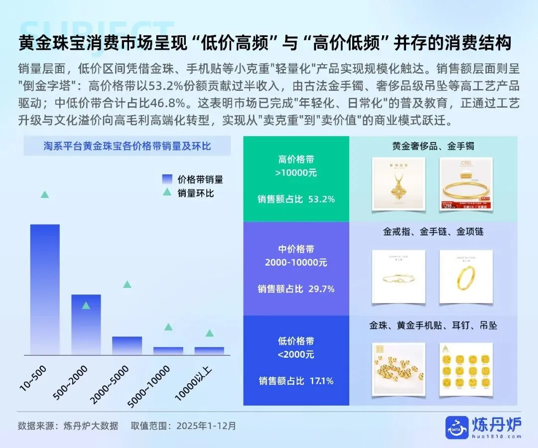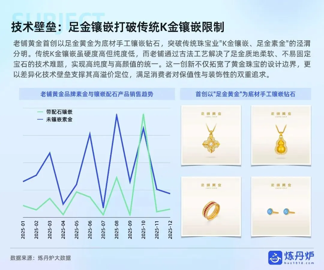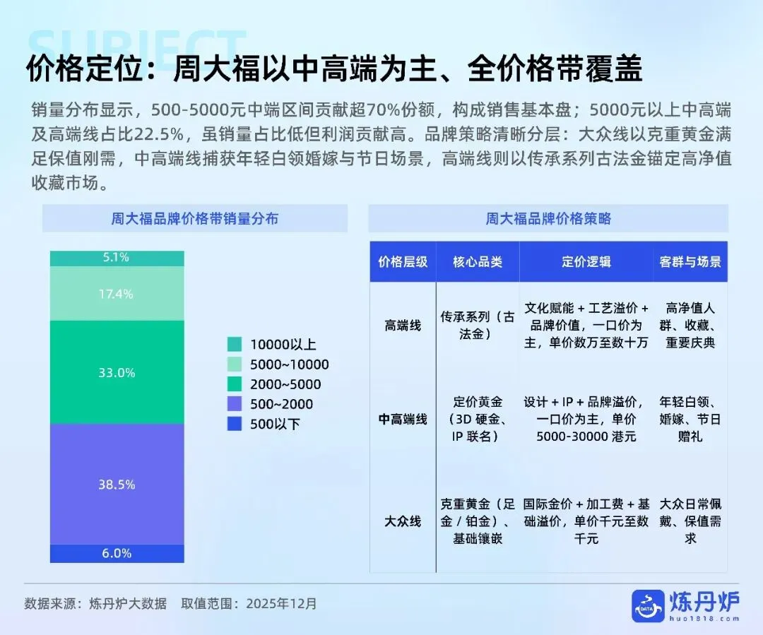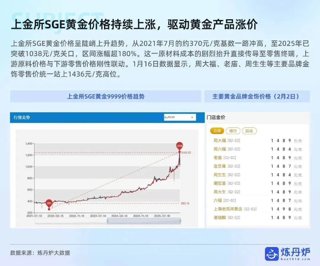 老铺黄金凭非遗古法+足金镶钻站稳奢侈高价带,周大福以全价格带IP联名横扫大众,品牌通过文化叙事、明星同款、跨界潮玩完成从“卖克重”到“卖情绪”的跃迁,黄金消费正式迈入悦己、社交、收藏三位一体的新时代。