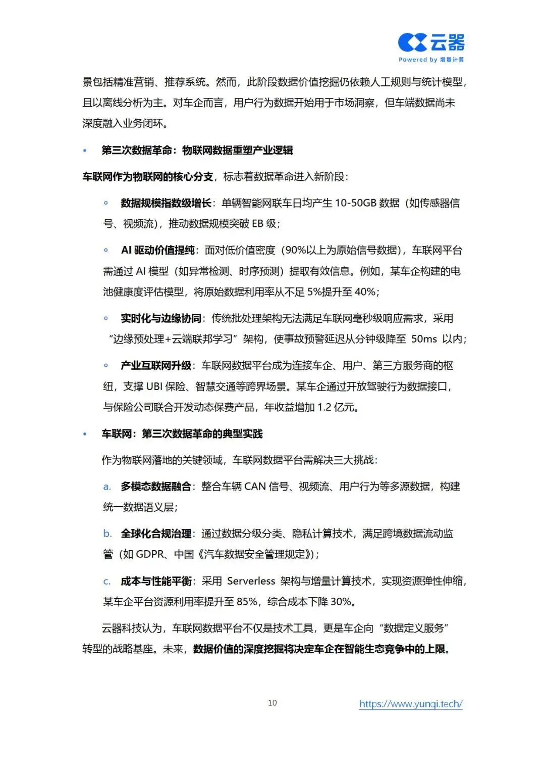 云器科技的实践案例显示,其 Lakehouse 平台已助力长安、长城等车企实现架构升级,在千万级 TPS 写入、全域实时化、TCO 优化 40% 以上等方面成效显著。