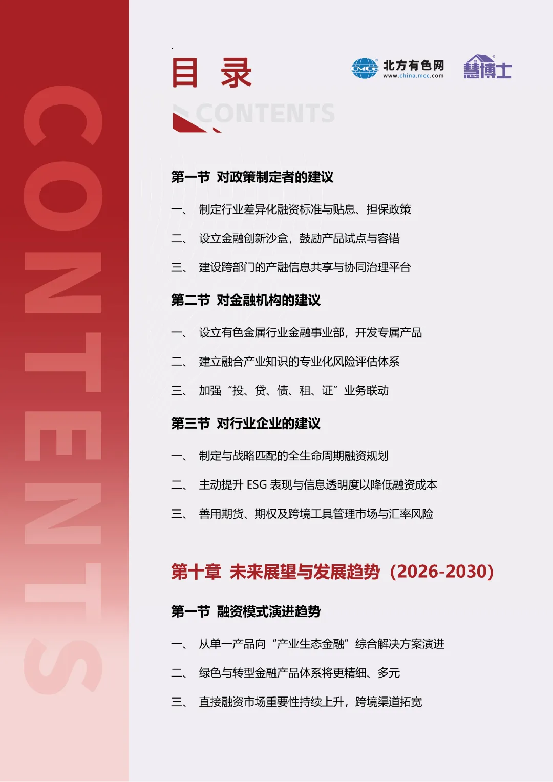 我们期望本报告能够为有色金属企业、金融机构、投资机构及相关政策部门提供一份全面的融资导航与创新参考,助力构建更高效、更适配、更可持续的行业产融结合新生态,共同支撑有色金属行业实现稳增长与绿色转型的战略目标。