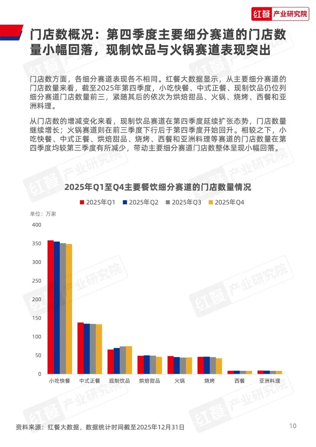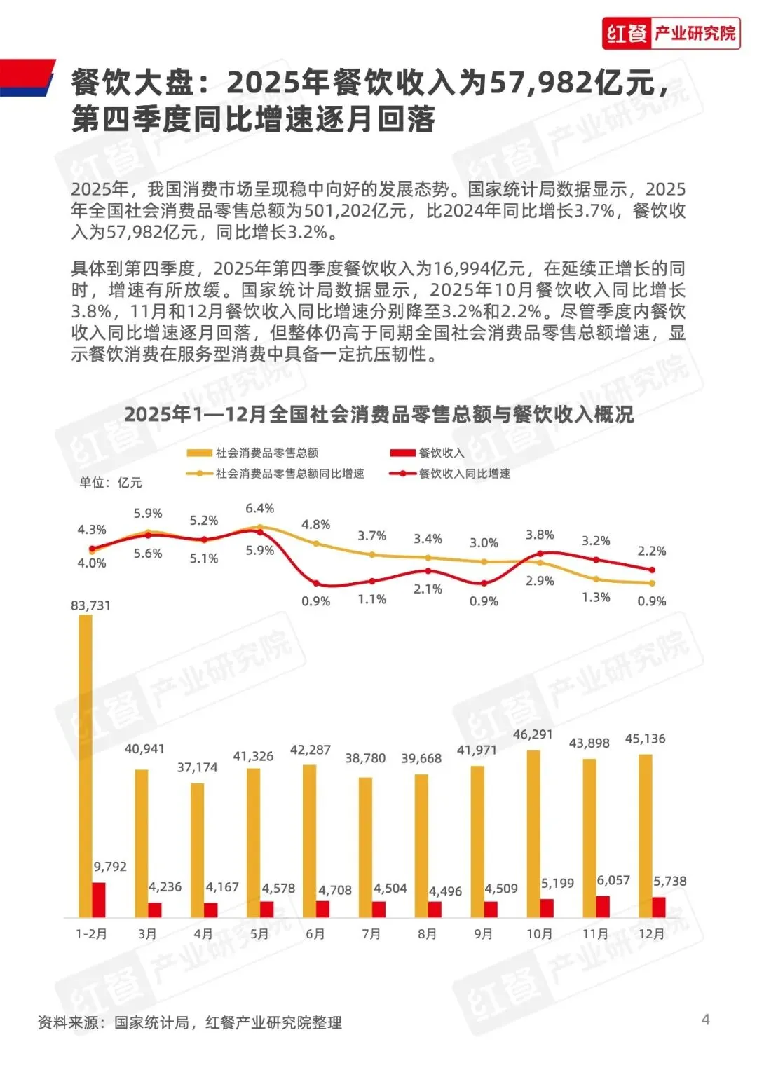 2025年四季度,中国餐饮业在增速放缓中步入“存量精耕”时代,创新与体验成为破局关键。当季餐饮收入16,994亿元,同比增速逐月回落至12月的2.2%;企业注册量同比减少15万家,而火锅、现制饮品赛道逆势扩张,“漂亮饭”、山野风等新锐品牌凭借产品与空间创新快速崛起。