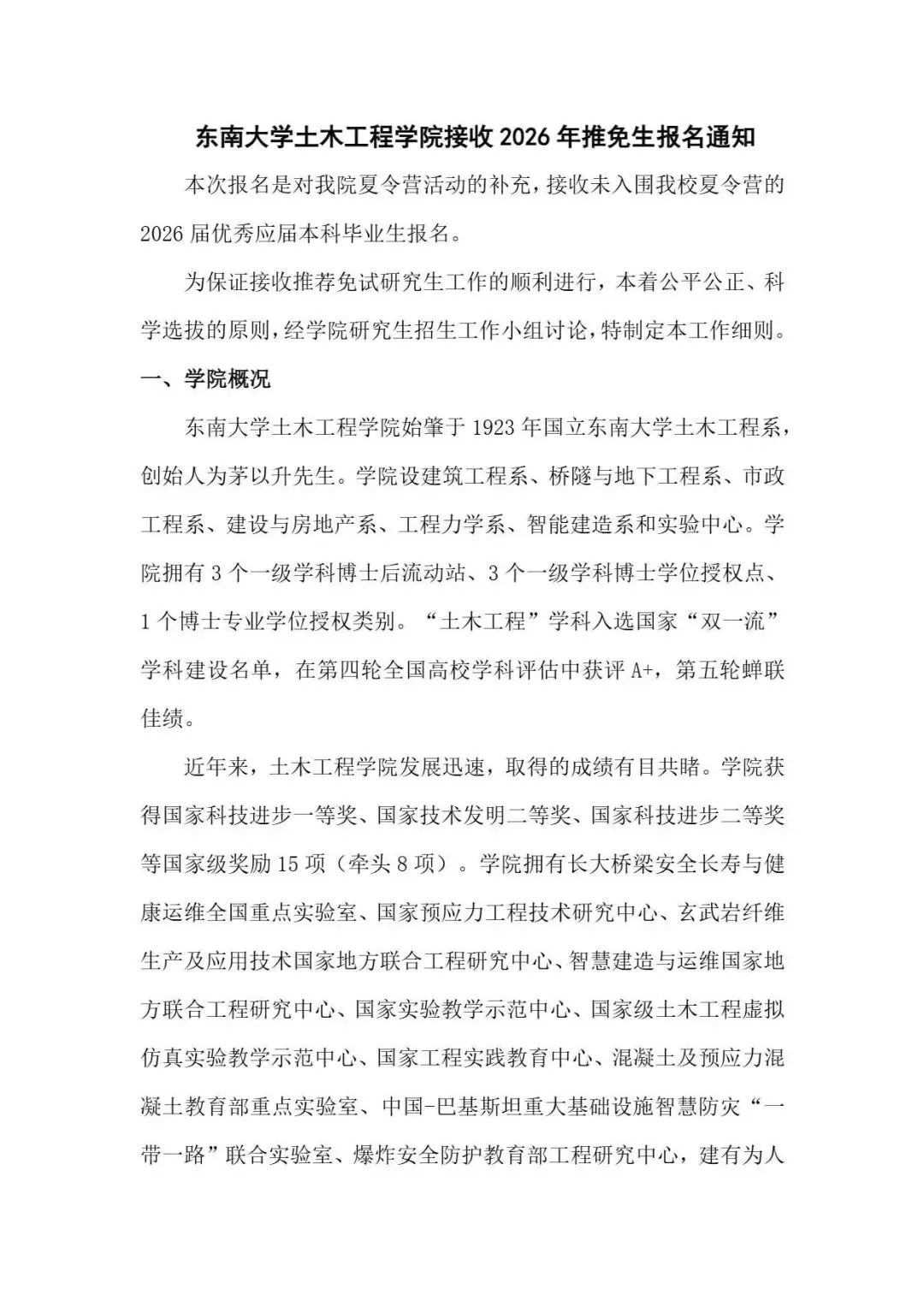 以东南大学土木工程学院的推免通知为例。
