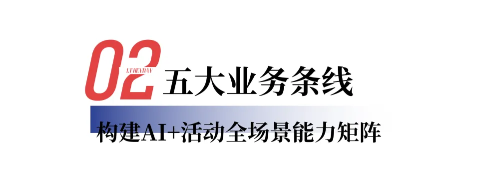 白皮书系统梳理了亮天在AI+活动领域的五大核心业务条线,形成覆盖活动前、中、后期的完整能力矩阵: