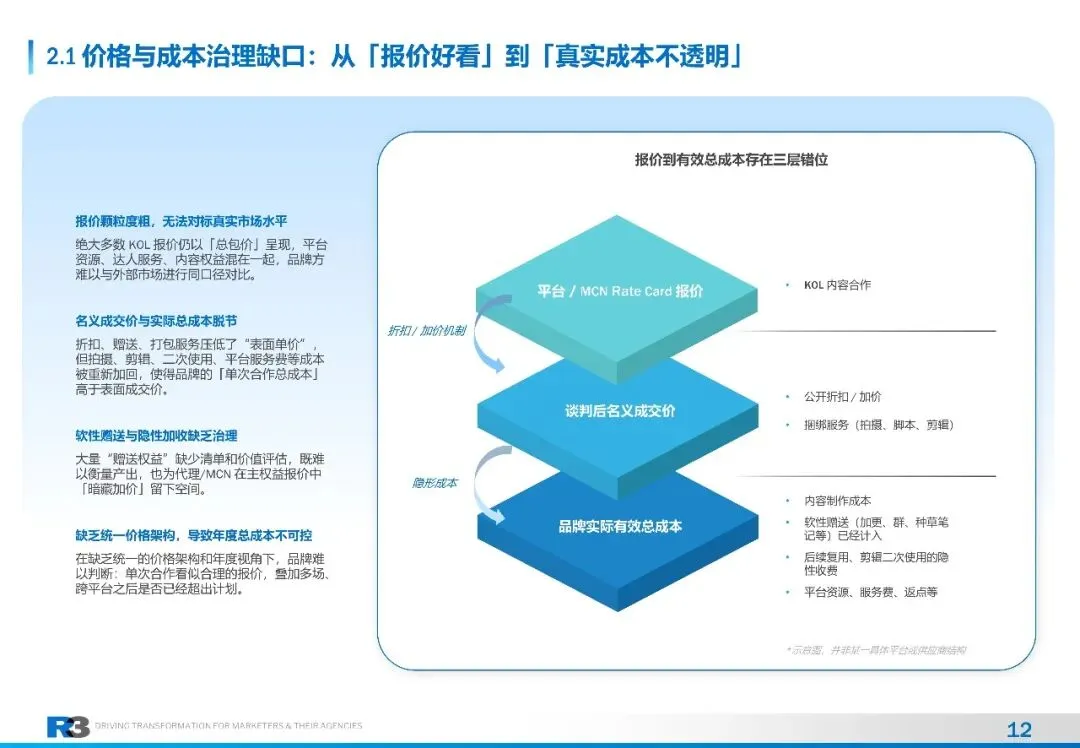 在这样的背景下,KOL投入已经从边缘试验,成长为许多品牌的第1二、第三大媒体板块。它一方面在内容与口碑层面发挥着越来越重要的作用,另一方面也逐渐成为CFO和CEO眼中的"黑箱大类"钱到底花在谁身上、哪些环节?价格和成本结构是合理?合同和权益边界是否清晰?对品牌与生意的贡献如何与其他触点放在同一套语言里讨论?