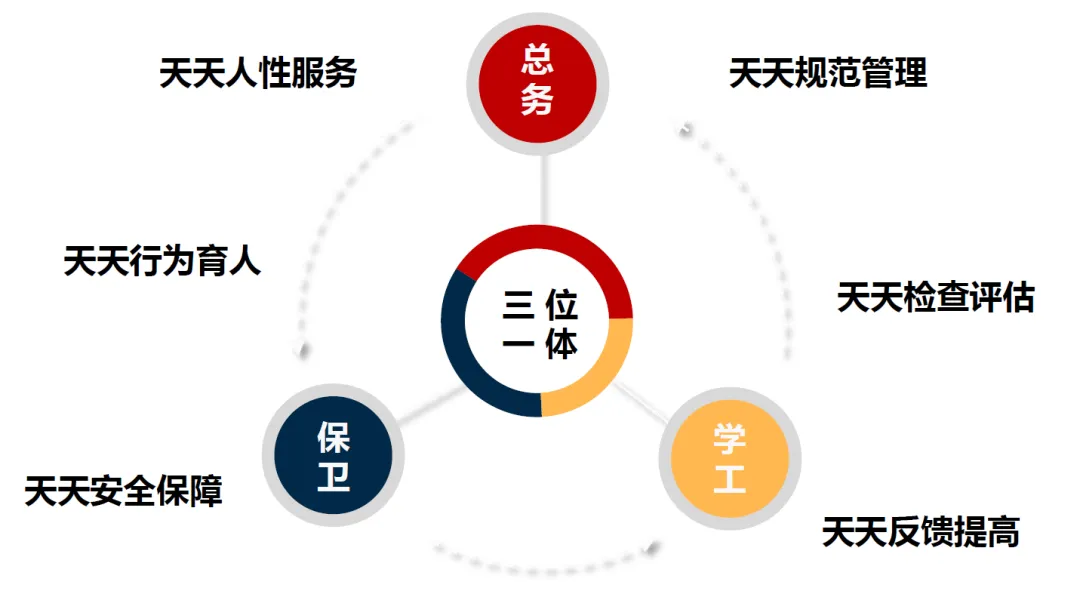 维修响应:线上报修平台+值班室反馈双渠道,推行“接单-处理-反馈-评价”闭环管理,高效解决宿舍设施问题。