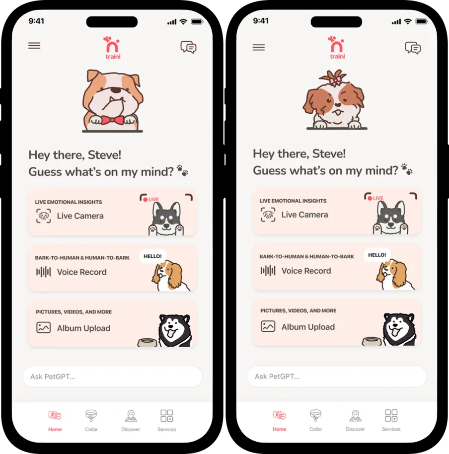 2022年,孙邻家在硅谷创立AI Native宠物科技公司Traini。公司站在AI垂直应用与宠物经济的交叉点,致力于打造兼具消费级应用和B端赋能属性的解决方案。他希望借助AI技术构建跨越物种的沟通桥梁,让宠物的情绪与行为被理解,也让宠物主的回应不再停留于直觉。他相信,“理解”是人与宠物之间最珍贵的连接,而技术正是实现这一连接的关键。