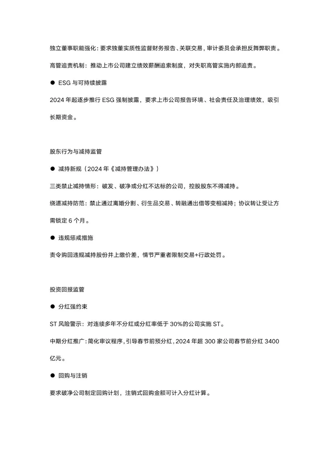 3. 监管:2024年ESG强制披露、减持“三破”禁令、分红低于30%将被ST,退市市值门槛提至3亿元。