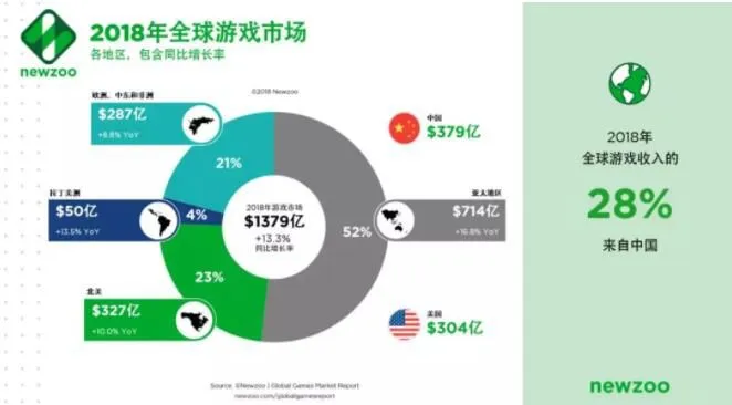 Newzoo公布了2018年最新的游戏市场统计数据。