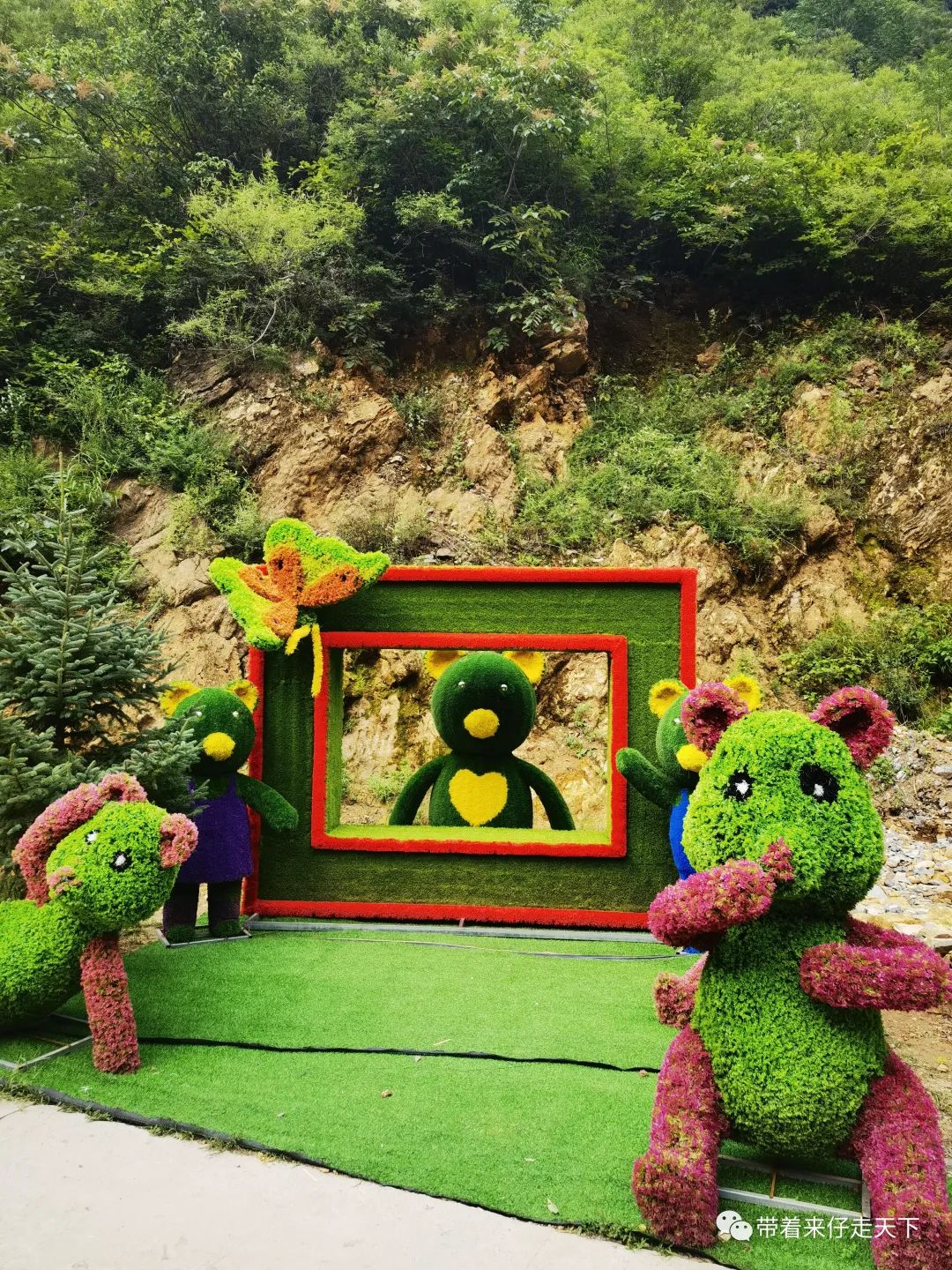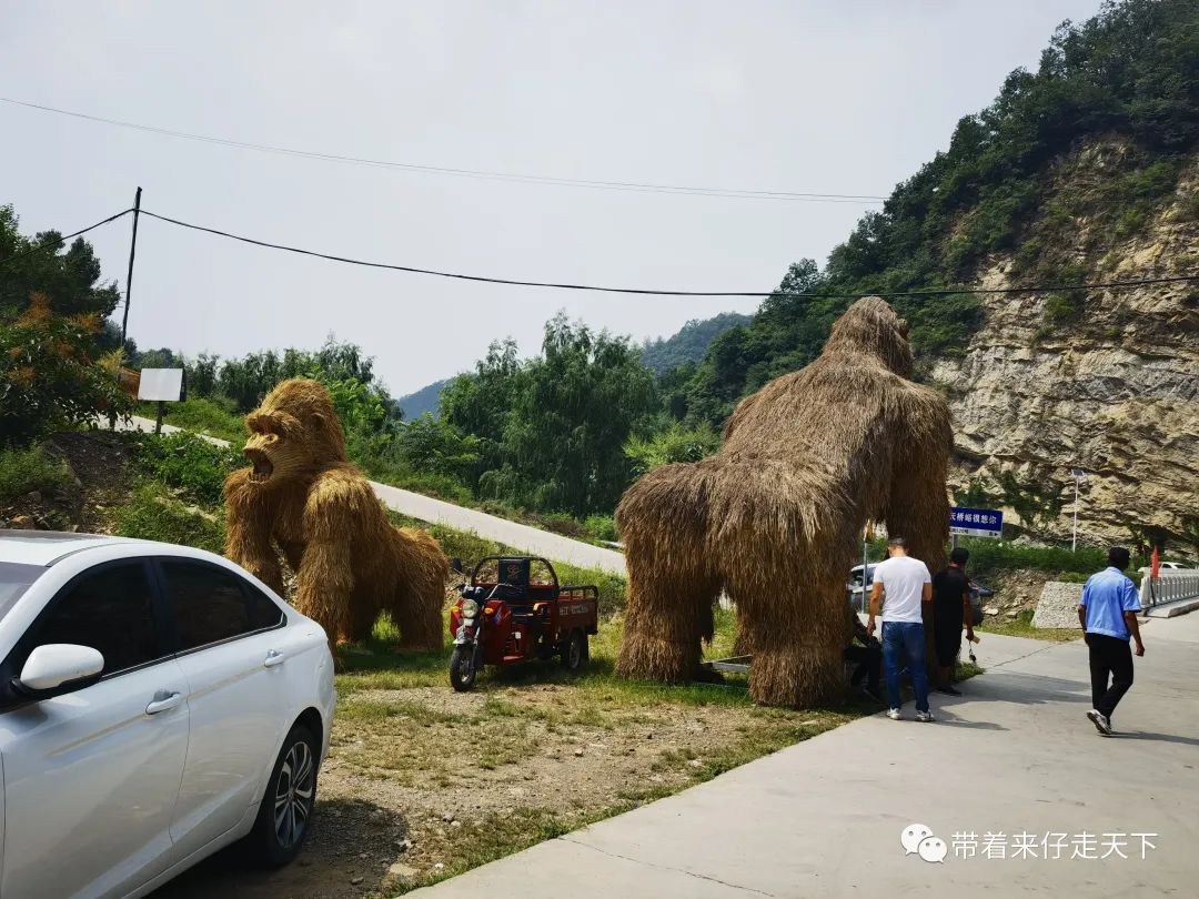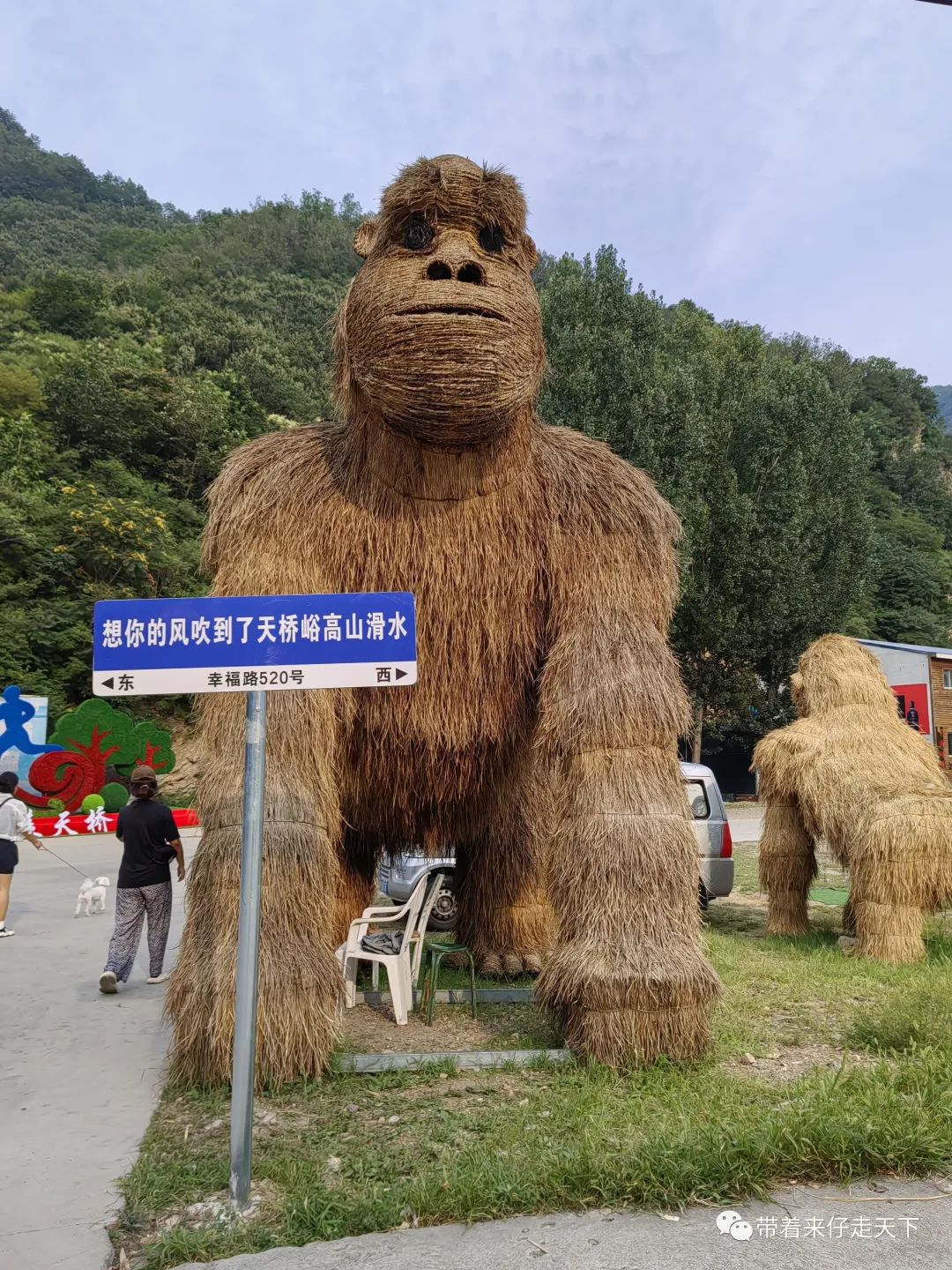 景区入口遇到了特别可爱的三个大猩猩草人,很多人和它们合影,天气太闷热,拍张纪念一下得了。