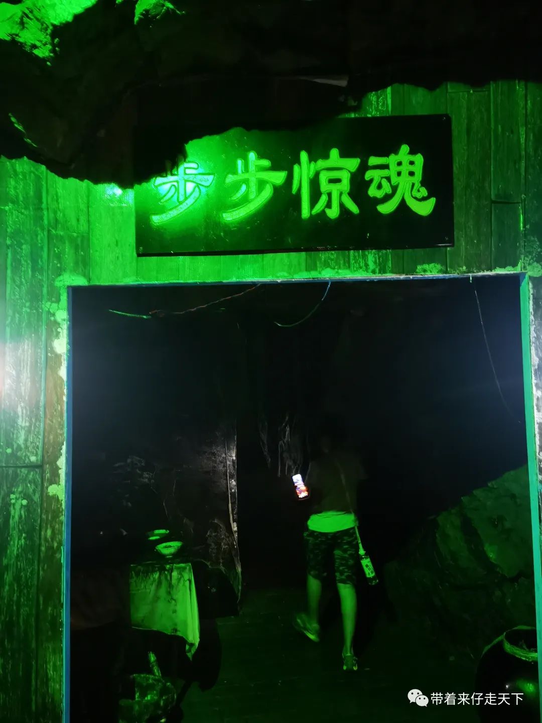 由于里面太黑,同事们又有点害怕,个别的人叫了起来,没一会来到了“鬼屋”。本不想进,可不进要么倒回去,要么过不去,思考中少爷一个人带头快步走了进去,我只好硬着头皮往里走。边走身边边传来嗷嗷叫的声音,我喊少爷他也不回应,好不容易抓住他,叫他带我走。他还时不时的敲打道具,我担心有NPC,不过想想如此阴暗潮湿脏污的地方,上面滴水地面淌水的,哪个NPC跑来受罪呀。鬼屋还挺长,走了好几分钟才到头,真是遭罪呀!强烈不推荐这里。