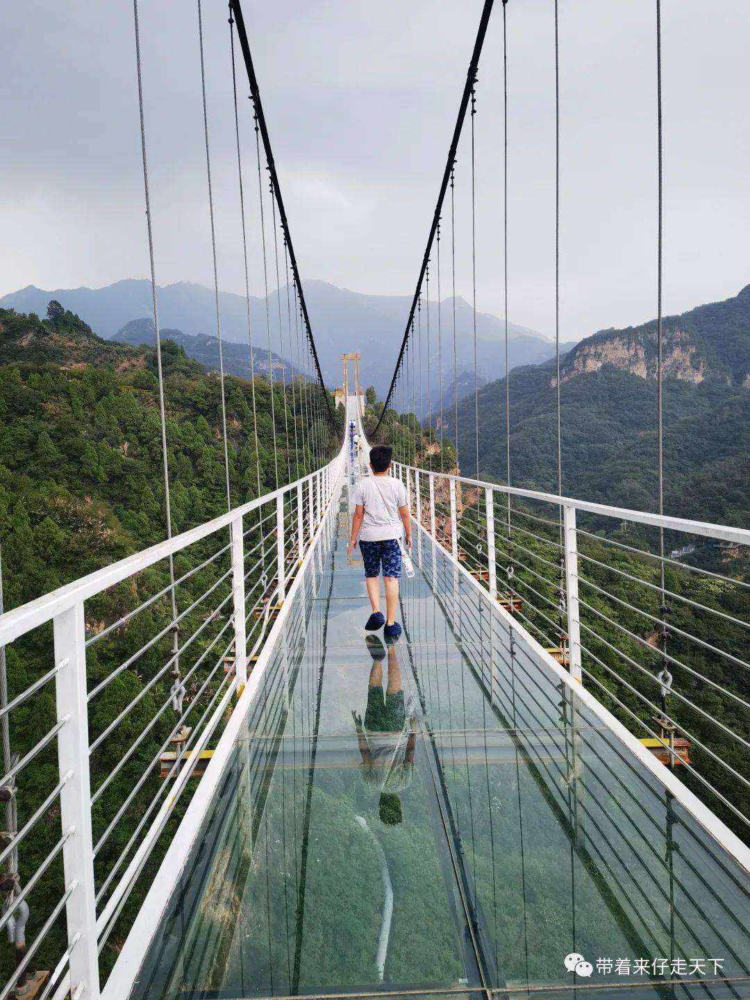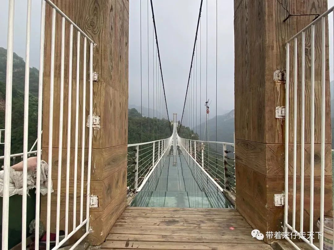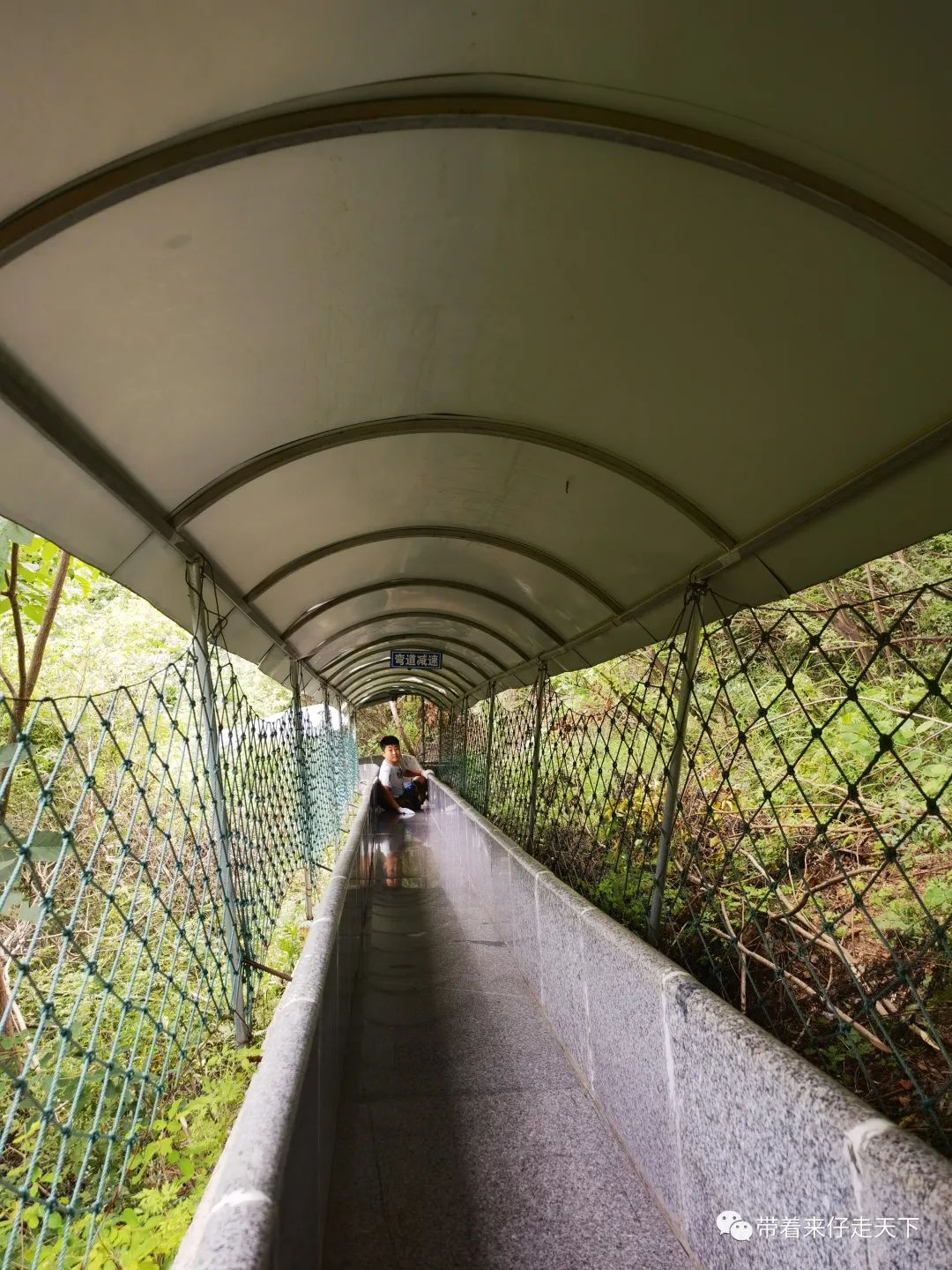 天桥峪玻璃吊桥据说是位居全国第二的玻璃吊桥,桥悬空高210米,横跨长260米,桥宽2米,游客在这里可以体验玻璃吊桥的惊险与刺激,对我们娘俩没有太大的挑战,还是有同事吓得大哭,同事发到公司团建群里,整个公司都知道了,笑得不得了,没想到平时那么爽快男孩子性格的一个人,竟然会害怕。我和少爷又一鼓作气往下走,终于来到了旱滑的地方,提前导游帮忙买好票,我们直接坐就好。