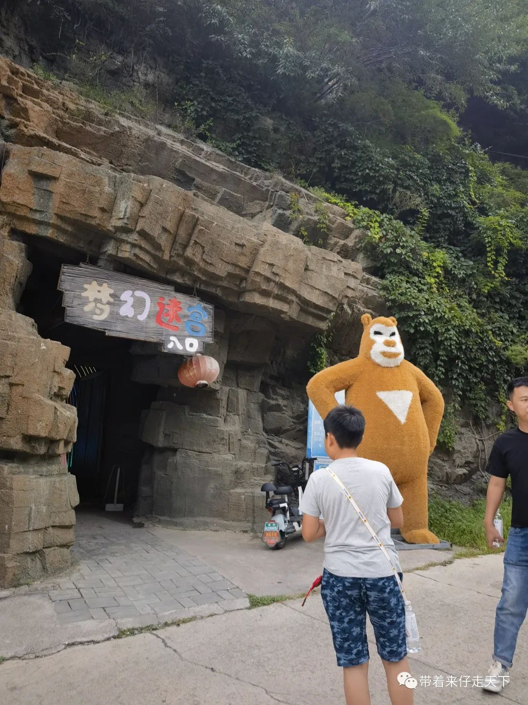 少爷等不及人齐,闹着要去玻璃栈道,我带她跟着十几个同事一起坐电瓶车上山,来到了梦幻迷宫,天气越来越阴,滴下来几滴雨,也没带雨伞雨衣,洞里非常的阴暗潮湿脏污,和溶洞一样闷热不透气。其中的颠倒小屋和迷宫和科技馆的一样,灯光和天河城梵高星空艺术馆的一样,里面没什么看头,极度不推荐。