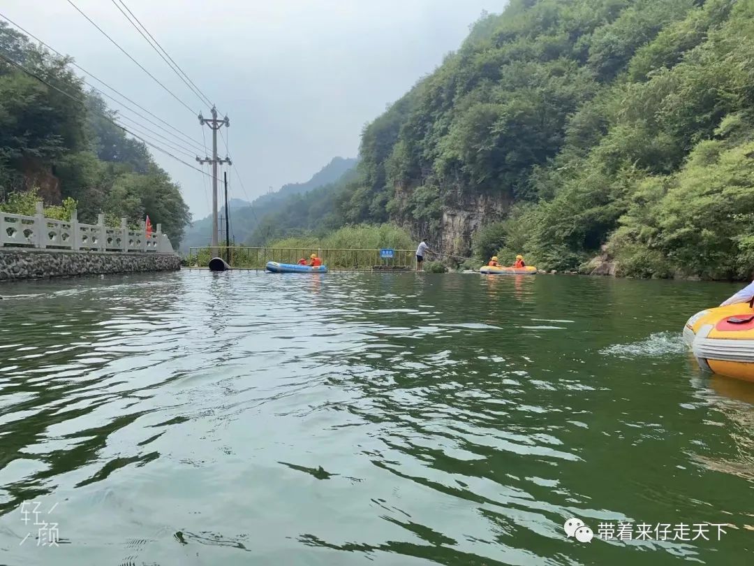 先是大巴车一路盘山道而上,给送到上游起点,还没排到我们时,就听到了嗷嗷的尖叫声,等到了前面几个同事,看到他们还没坐上去,漂流艇底部就已经有十厘米左右深的水,待他们一上去整个屁股就完全湿掉,然后来不及反应,就一猛子往下游飘去,大家哇哇大叫,我心里有点犯怵,为了儿子顶着头皮上,此刻有点想念老爷,他在的时候哪里用我带孩子冒险?