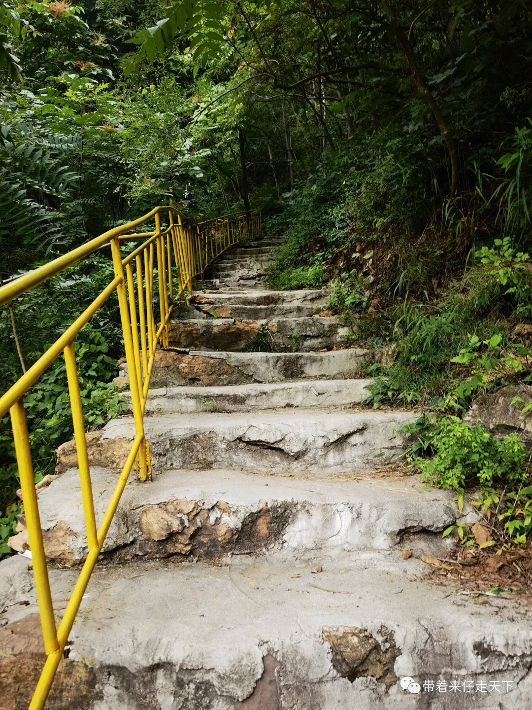 从鬼屋出来大家累的不想走,又是乘坐电瓶车去玻璃栈道,结果来到栈道山脚下,还要再爬山700多个台阶才能到。少爷又是第一个冲上去,我努力追也追不上,此时还下起了雨。问了下前面的同事下大雨会关闭,为了不虚此行,一鼓作气往上爬。