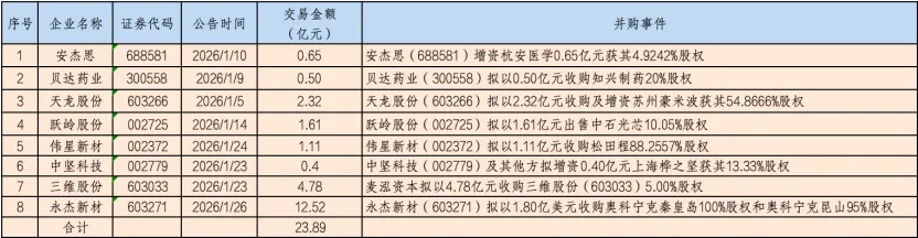 本月浙江A股上市公司新发起的并购交易共计8起,交易总金额23.89亿元。