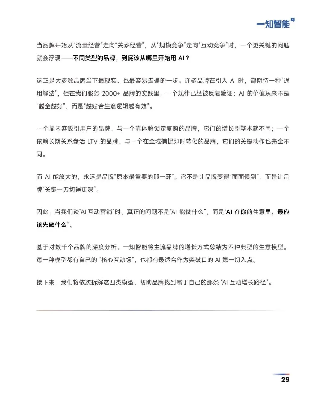 AI 技术的崛起,为品牌破解增长困局提供了新方向。过去,品牌关心 AI 的模型参数,现在更关注 AI 能否嵌入生意体系。AI 不应是外挂工具,而应是内生的核心生产力,像水和电一样流动在品牌业务脉络中。这种理念下,“AI 互动营销” 成为行业关键词,它不是单一工具,而是一套重构品牌与用户关系的全新打法。