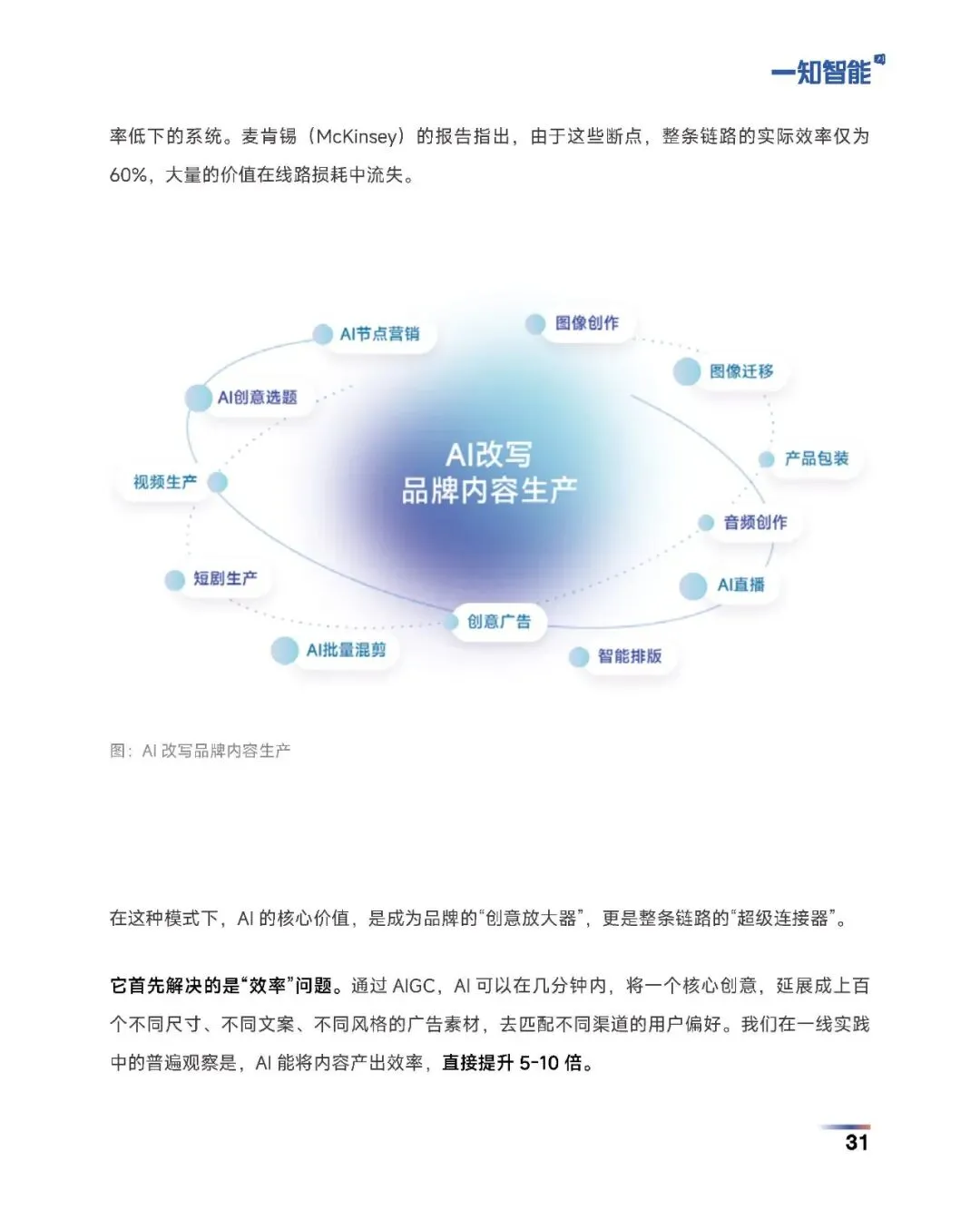 不同生意逻辑的品牌,正用 AI 找到差异化增长路径。对于内容驱动型品牌,比如美妆、时尚类,AI 是 “创意放大器”。这类品牌 60% 的用户触达依赖 KOL 和社交媒体种草,但传统内容生产成本高、迭代慢,单条创意短视频成本上万元,迭代周期以周为单位。而 AI 通过 AIGC 技术,几分钟就能将一个核心创意延展成上百个不同风格的素材,内容产出效率提升 5-10 倍。在品宣场景,AI 能将品牌 brief 转化为适配不同渠道的内容;在电商场景,AI 批量生成 UGC 风格种草视频,支撑大规模 A/B 测试和广告投放优化。