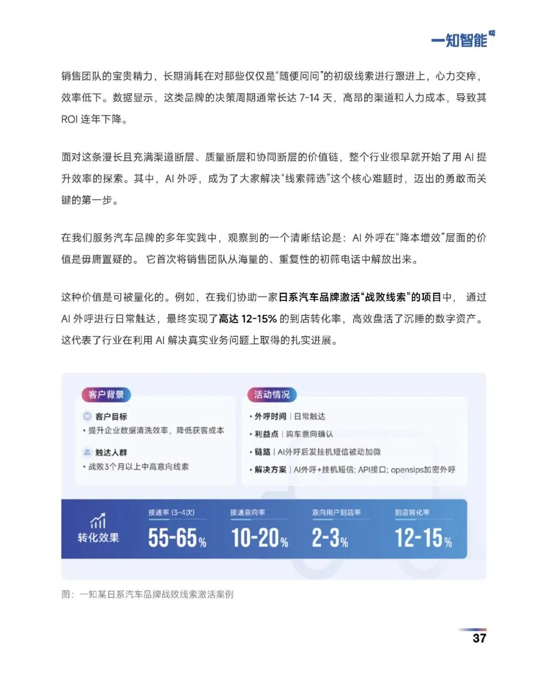 体验驱动型品牌,如汽车、家居类,AI 则是 “线索精炼器”。这类品牌客单价高、决策周期长,成交关键在线下体验,但线上线索质量参差不齐,销售精力浪费在无效跟进上。AI 外呼技术能筛选高意向线索。如今,大模型驱动的对话式 AI 还能理解上下文,像 “超级助理” 一样辅助销售,加上 AI 虚拟试驾、AR/VR 看房等体验工具,进一步提升线索转化效率。