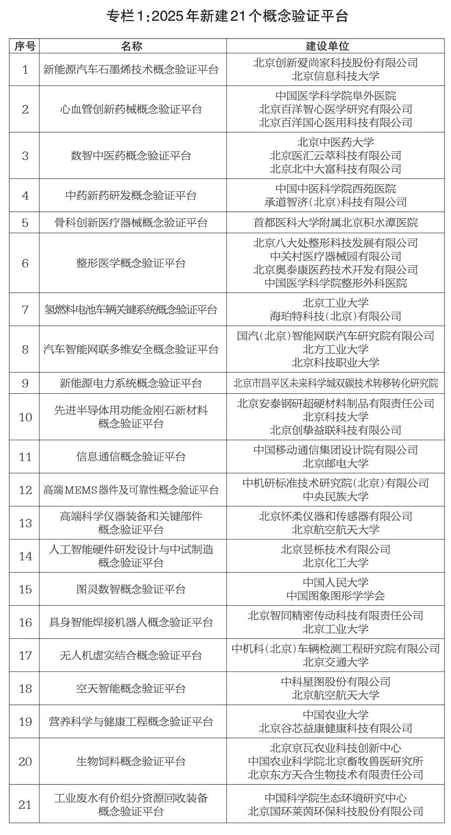 强化科技创新策源能力。畅通教育科技人才良性循环,培育开放包容创新文化,全面增强自主创新能力。(1)加快建设国家实验室永久园区,推动北京清华前沿交叉创新研究院投运,加快北京北大全重科技创新研究院建设。围绕脑机接口、高温超导等领域建设一批新型研究创新平台。(2)高效运行怀柔综合性国家科学中心重大科技基础设施,建设科技设施信息服务平台,争取“十五五”大设施项目落地布局。(3)深入实施基础研究领先和关键核心技术攻坚行动,布局4个前沿基础领域、7个应用基础领域和一批学科交叉融合领域研究,健全关键核心技术攻关评估考核机制。(4)出台中关村新一轮先行先试改革政策,实施分园提升行动。深化“三城一区”主平台联动发展。制定市级高新技术产业开发区评价办法,推进市级高新技术产业开发区动态调整、优胜劣汰。(5)建立“需求触发、即时启动”的高校急需学科专业快速布局机制,加快市属高校分类卓越发展,建好中关村学院、卓越工程师学院等新型育人载体。(6)鼓励创新主体发起或参与国际大科学计划。前瞻布局一批战略前沿和空白薄弱领域高水平期刊。