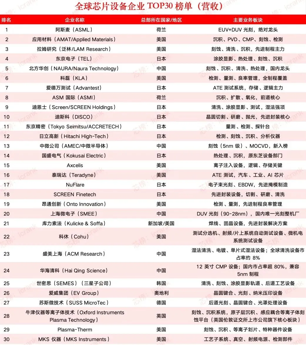 值得注意的是,若将范围扩大至排名前30名的企业,还将新增两家中国企业:盛美上海和华海清科。