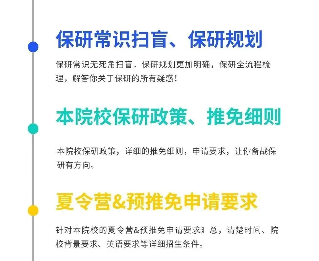 不仅要刷绩点排名、准备竞赛、科研论文,还要清楚的了解本校保研政策,目标院校保研政策。如果只靠自己去网上找,既浪费时间,又没有保障!