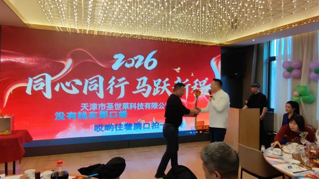2026年1月29日—31日,天津圣世莱公司2025年度工作总结表彰大会在天津汉庭酒店隆重召开,为期3天,本次会议以《同心同行、马跃新程》为主题。天津市圣世莱公司总经理羿昌发先生、各区域经理、销售人员、部分直销客户、销售内勤人员等出席会议。