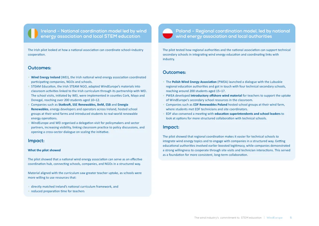 欧洲风能协会发布了一份关于风能STEM教育方面的白皮书, 分享了这些试点项目的成功案例,供企业、教育合作伙伴和学校在进行风能STEM教育时借鉴这些经验,并在建立行业与学校之间的STEM学习合作关系时,运用这些成功案例。