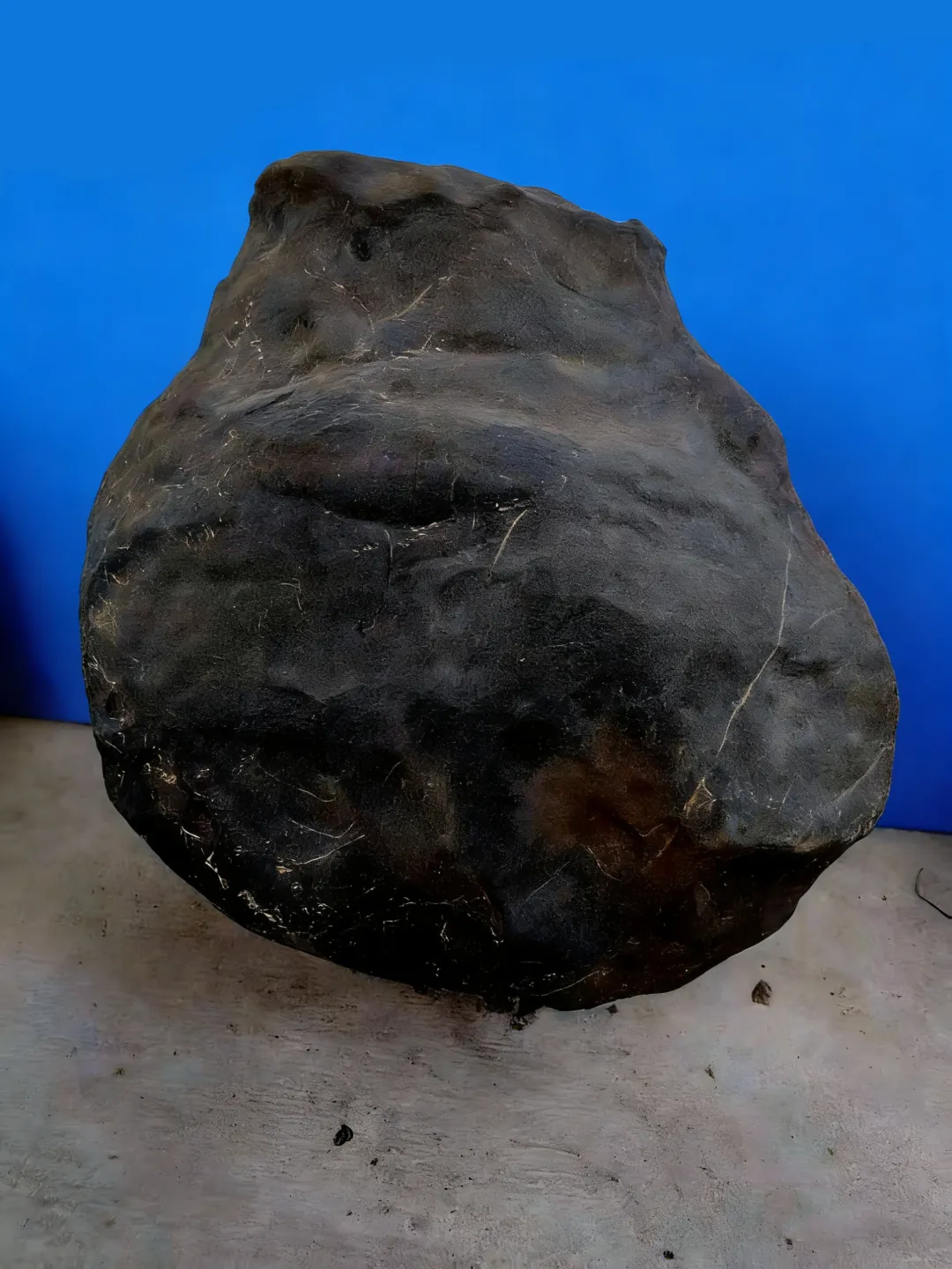 形态:典型的冬瓜形,整体形态规整,两端略尖、中部饱满,轮廓流畅,无明显变形,是陨石定向陨落过程中,受大气层气流作用形成的典型形态;