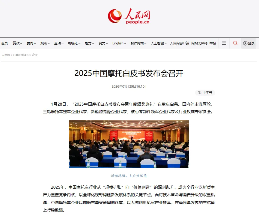中国网通过详实的数据,解读了《2025中国摩托白皮书》的核心内容,分析了市场持续增长的内在动力与消费新趋势。