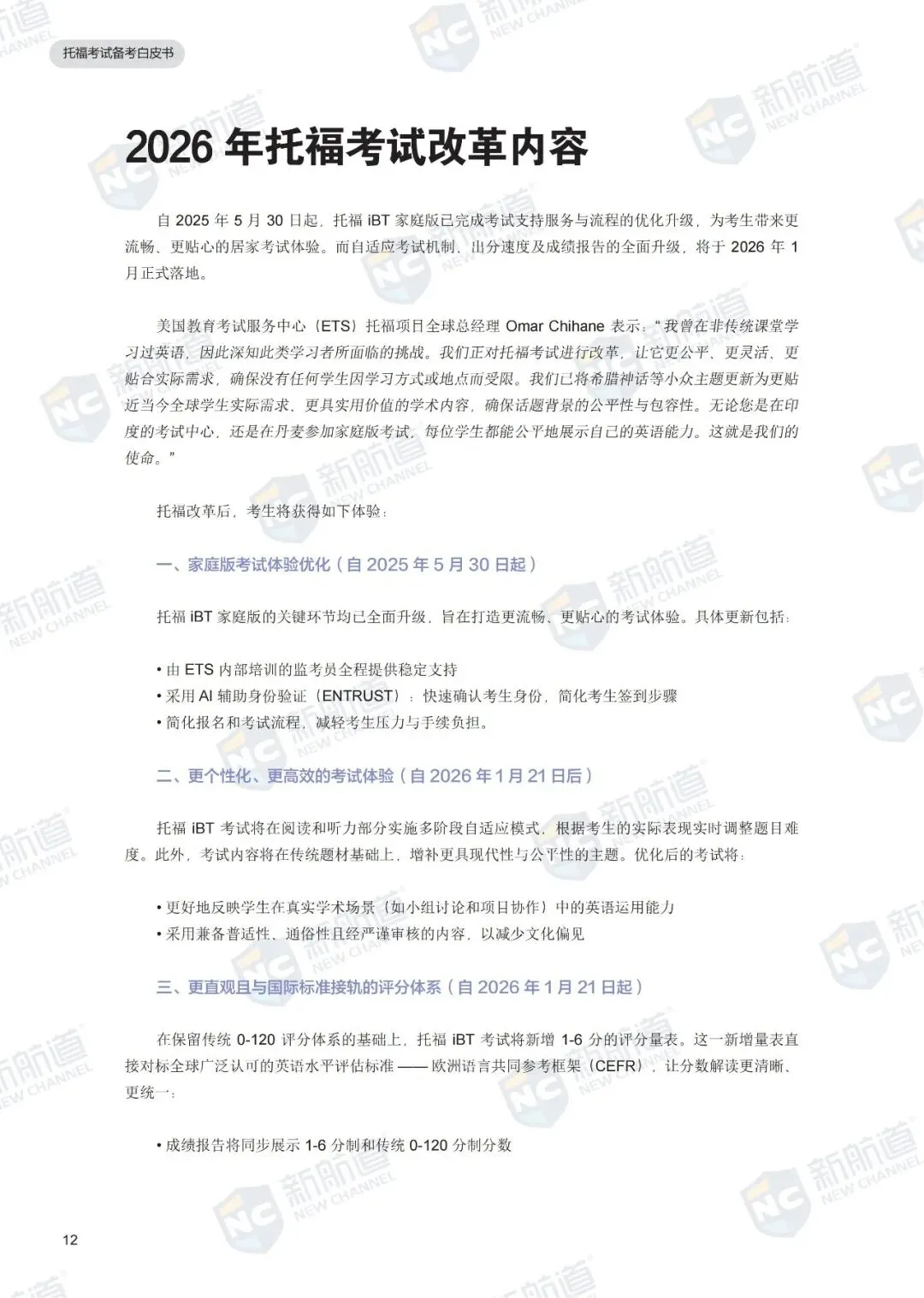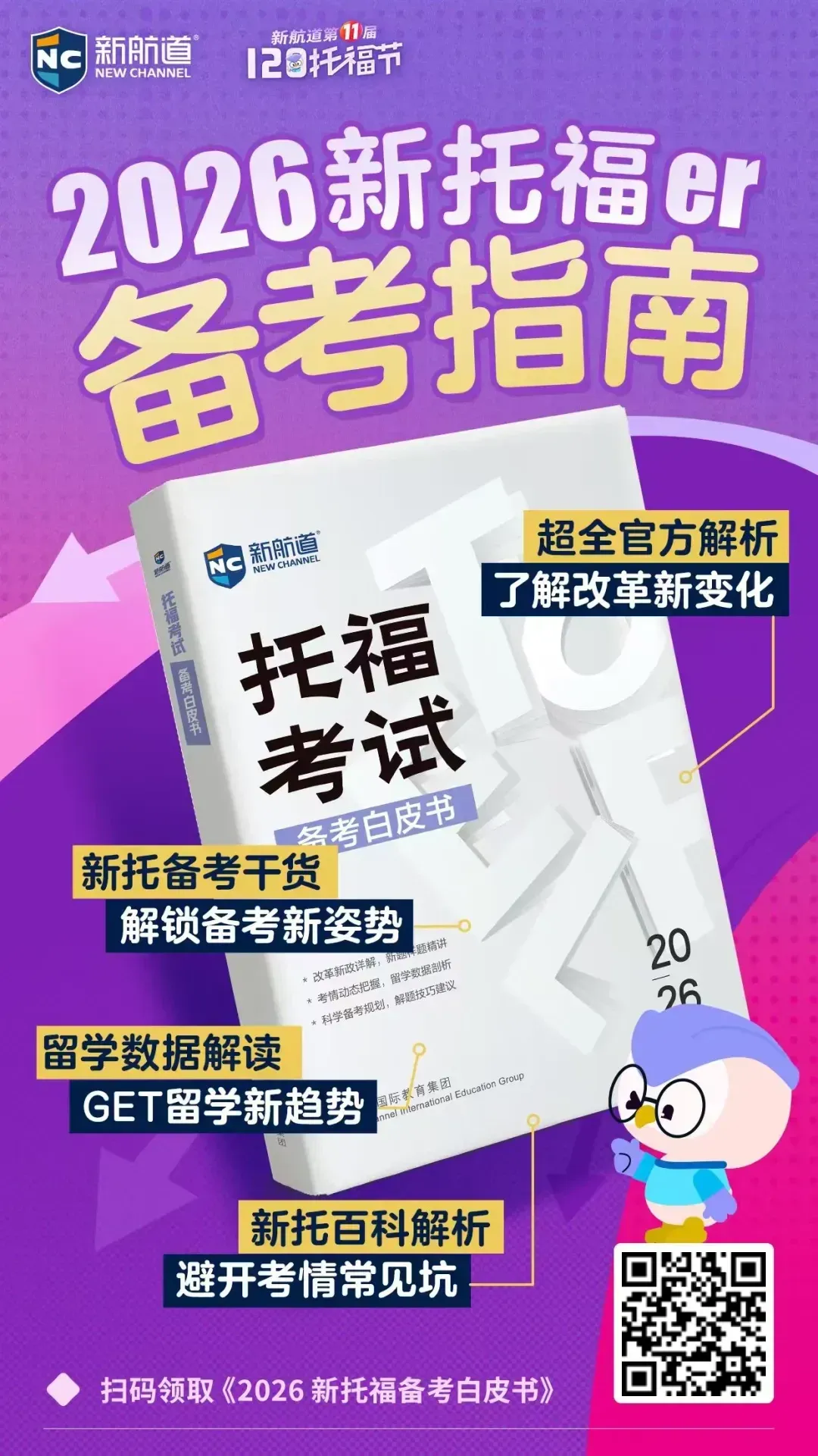 解读核心变革:清晰梳理2026年托福考试在考试设计、内容、评分体系等方面的根本性变化,助你理解改革逻辑,摆脱信息焦虑。