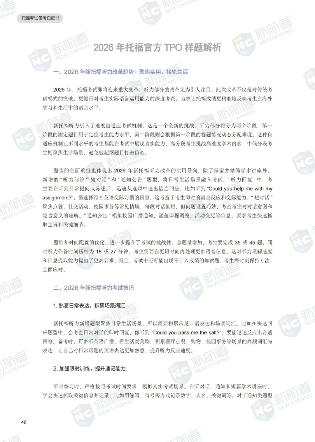 写作:明确新版写作对实用沟通能力的侧重,提供关键突破路径(附新版写作TPO样题解析)。
