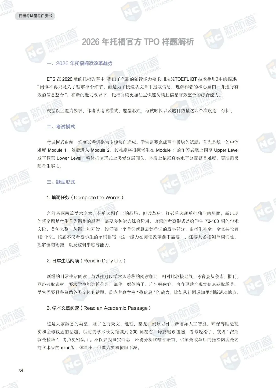 阅读:解析能力考查重点的转向,指导你如何高效应对新形式(附新版阅读TPO样题解析)。