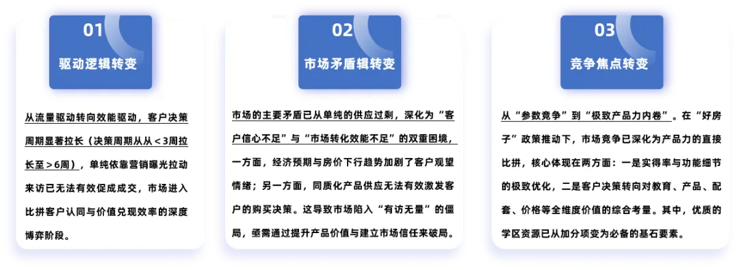 “名校+”资源从溢价要素变为入场标配(如奥北、高新三期凭合同即可入学),客户决策关键也由单一因素转向“教育/产品/配套/价格”兼备的全维度价值。