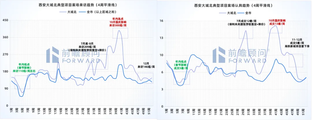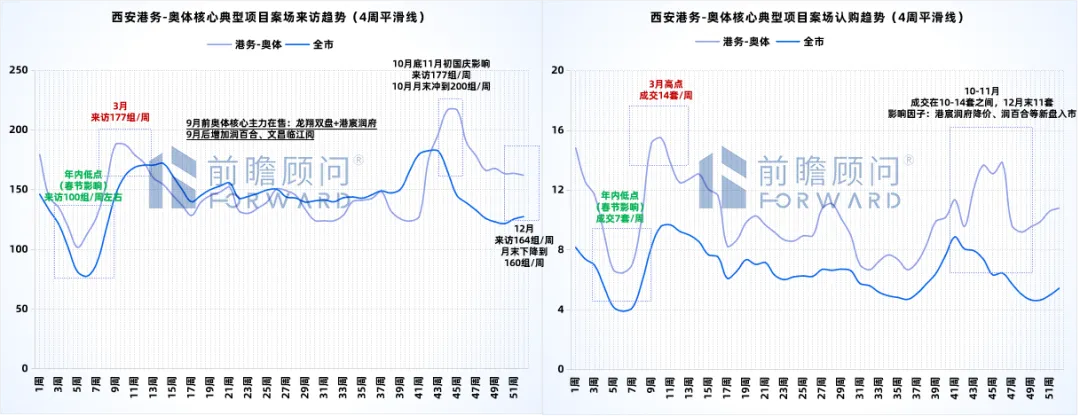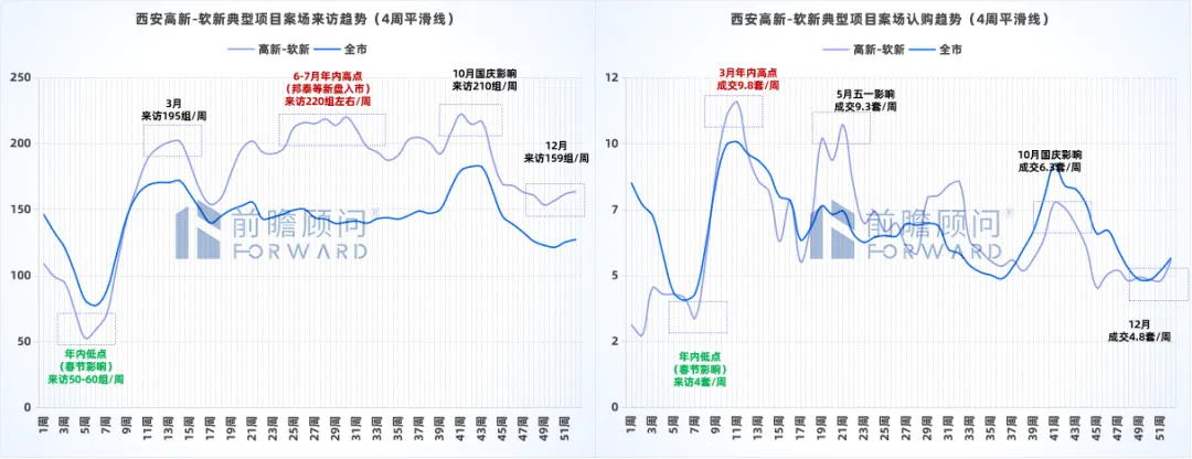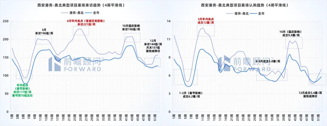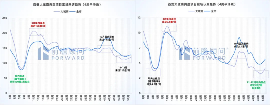 备注:数据来源-前瞻数据库、AUR数据系统、前瞻线下调研(典型项目)、西安市房管局;来访波动率=月度来访/年均来访。