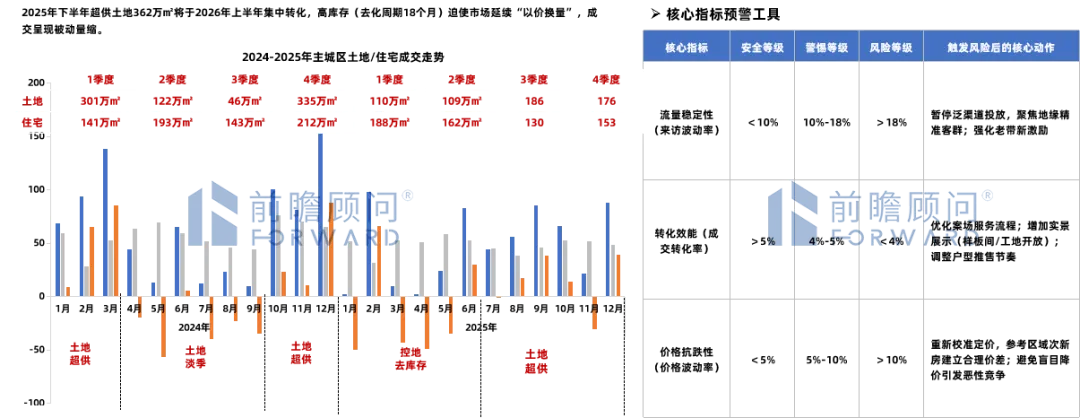 2026年市场将延续“被动量缩”,全域转化率维持在4-4.5%,低韧性板块价格仍有下行压力,需聚焦信心修复与供给优化;建议建立周度数据预警机制,设置核心指标风险阈值。