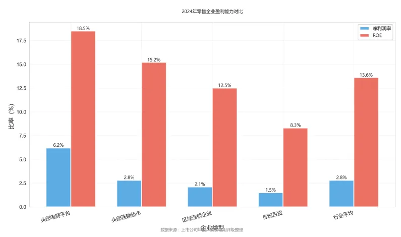 2024年,零售行业整体经营稳健,头部企业盈利能力较强,但行业内部分化明显。线上零售企业增长较快,传统百货、超市等业态增速放缓。成本控制能力成为企业竞争关键,供应链效率高、数字化水平强的企业表现优异。