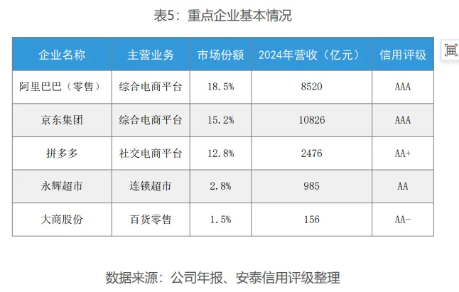 分化趋势明显:头部企业数字化能力强、供应链效率高,竞争优势巩固,信用质量稳健;传统零售企业转型压力大,部分企业信用风险上升,但对行业整体影响有限。