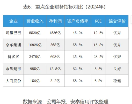 阿里巴巴、京东、拼多多等头部电商平台规模优势明显,生态体系完善,技术能力强,用户基础庞大。供应链效率高,物流配送网络完善。盈利模式成熟,现金流充裕,信用质量优异。