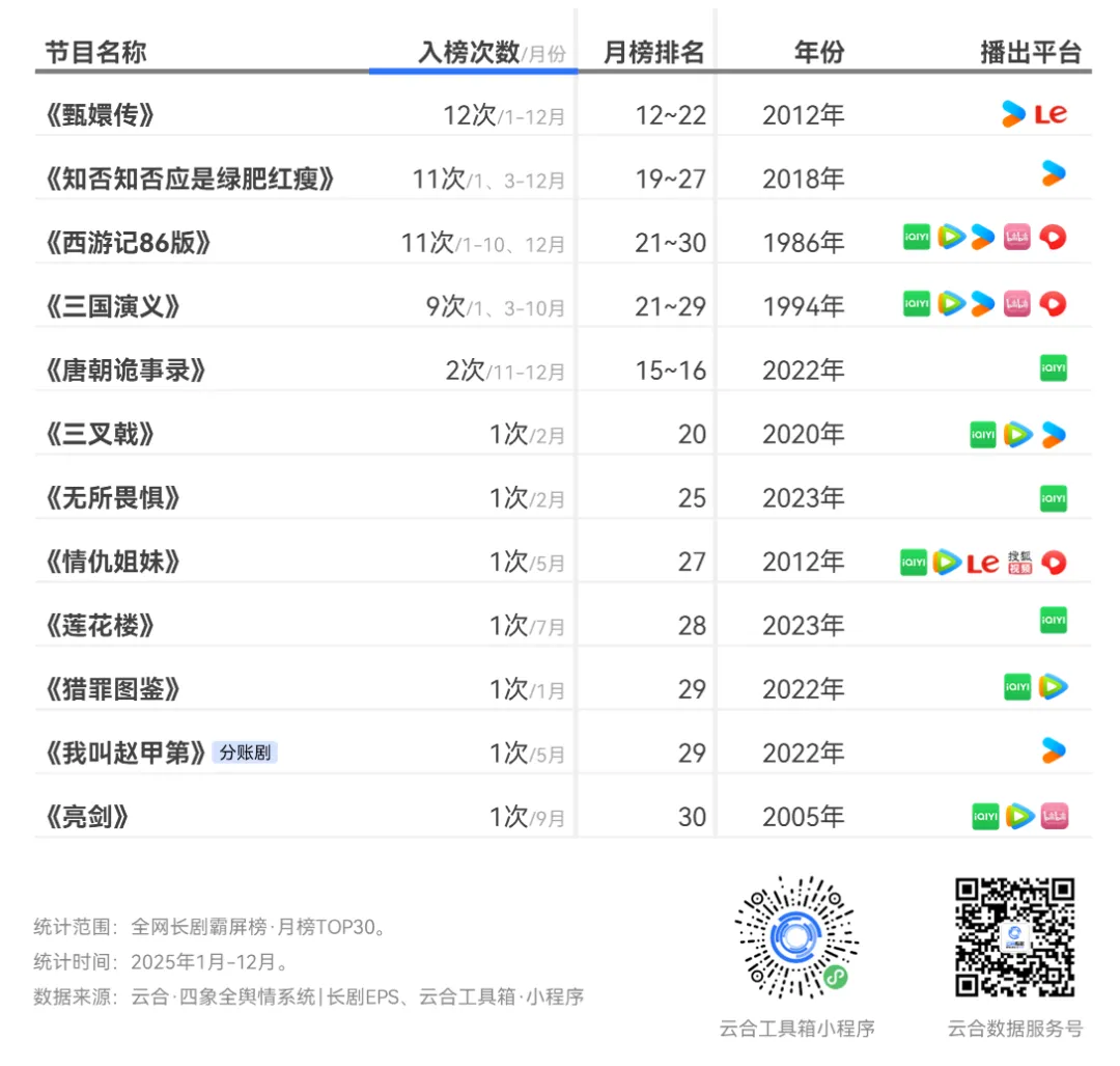 长剧全网榜·2025年1-12月上榜老剧(2023年及之前上线作品)