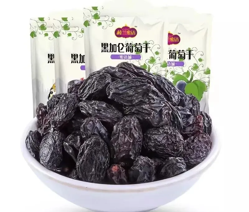 无籽肉厚:新疆黑加仑葡萄干多为无籽品种,食用时免去了吐核的麻烦。而且果肉厚实,每一颗都饱满圆润,富有嚼劲。