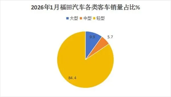 总之,在2026年1月福田汽车客车板块中,大中轻客车共计销量3348辆增8.2%,轻客占比超8成领跑;而大中客同比增速均超5成、表现抢眼,因此成为今年1月福田汽车客车板块的一个主要特点。