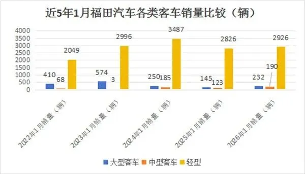 下面笔者从市场销量层面来简要分析一下福田汽车客车板块2026年1月的主要销量特点。