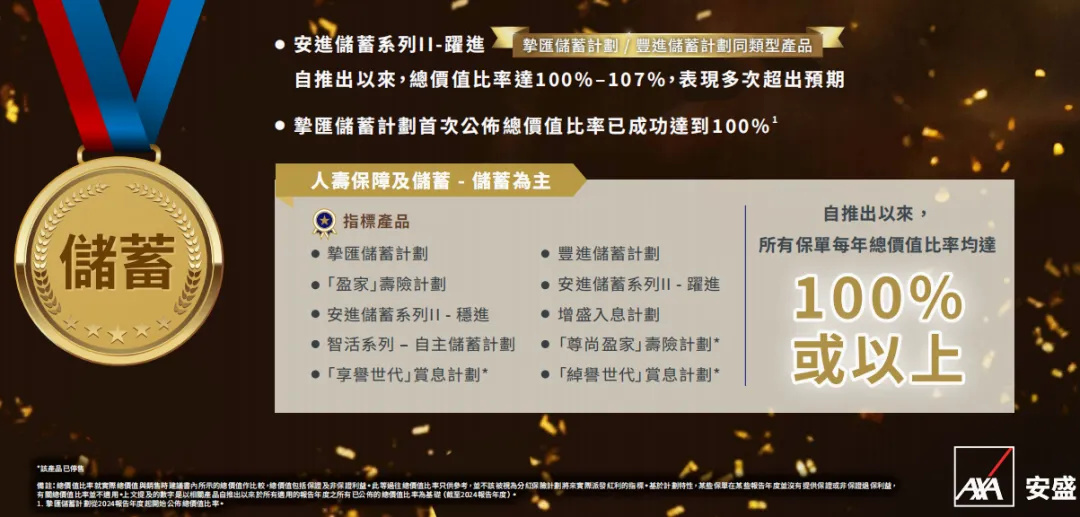 储蓄险“安进储蓄系列2-跃进”连续4年实现超100%达成,其中2018-2021年投保的保单实现率达100%-103%;“丰进”储蓄险2020-2022年投保的保单均实现100%达成;危疾险“康采2”“康诺2”、人寿险“享未来”“惠未来”均保持连续5-6年100%达成的优异成绩,稳定性远超行业平均水平。