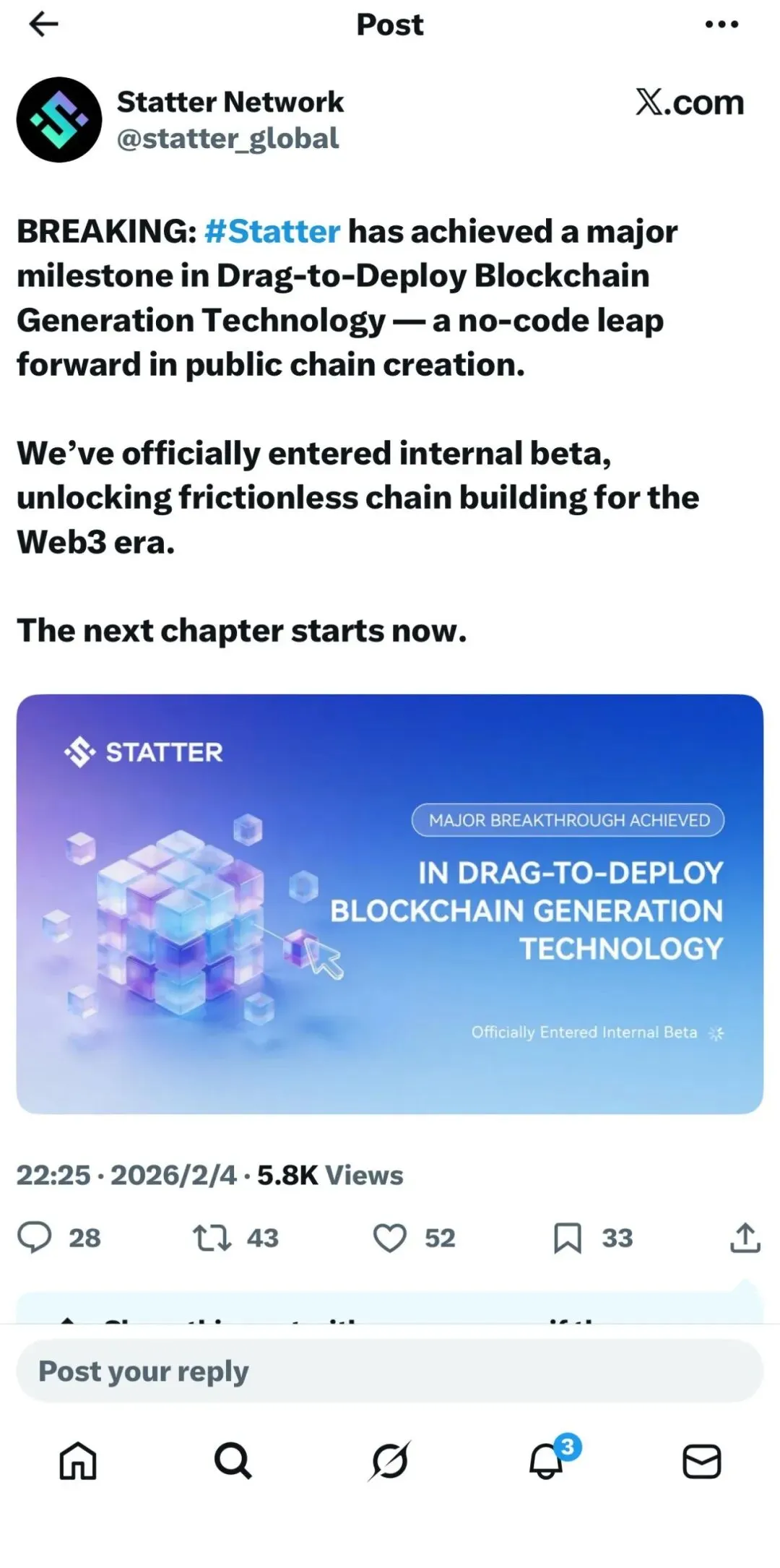突发新闻:Statter在拖拽式部署区块链生成技术方面取得了重大里程碑--这是公链创建领域的一次无代码飞跃。