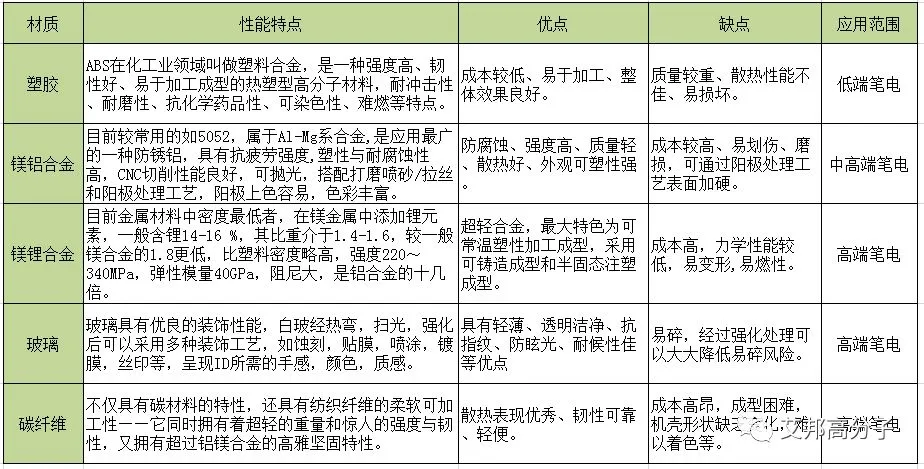 笔电材质经近20年的发展,主要材质如下: