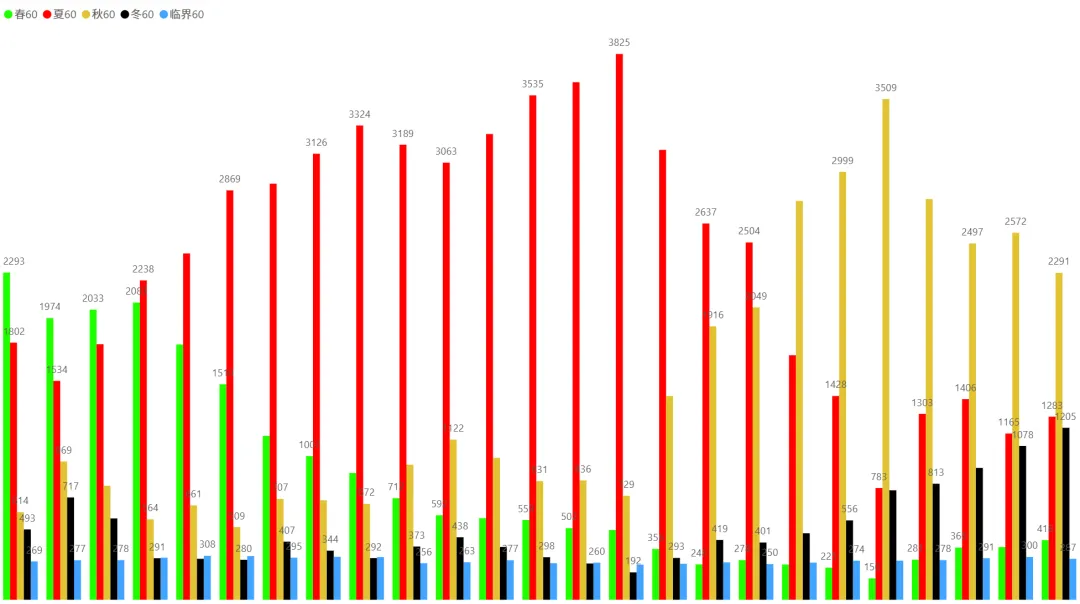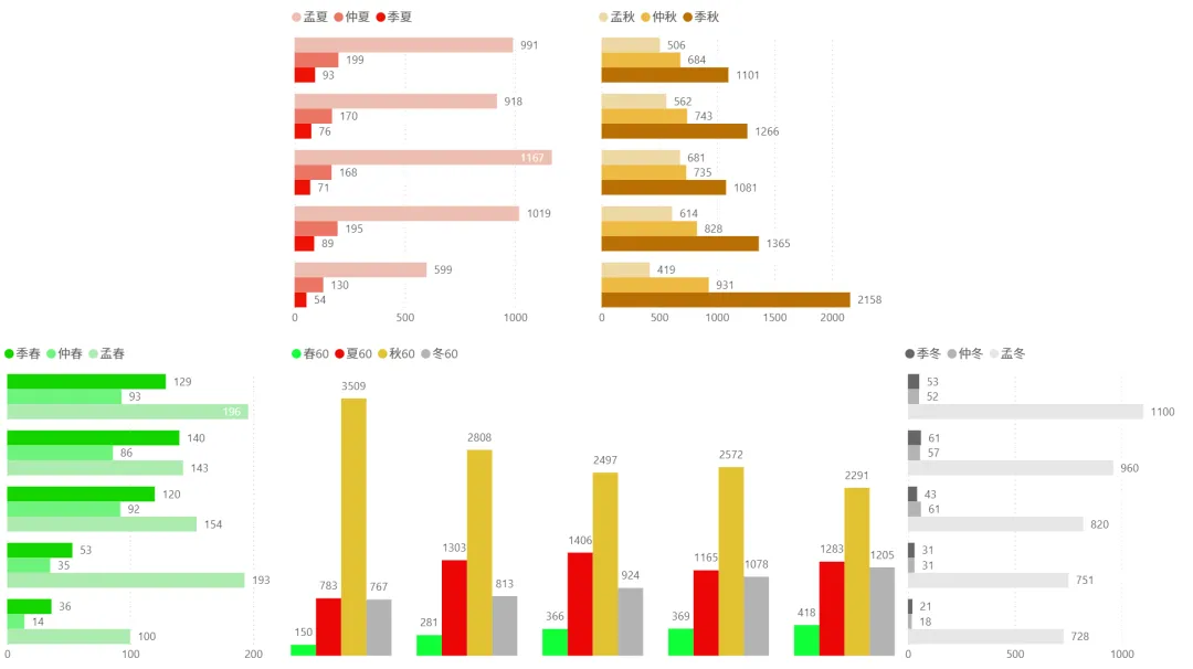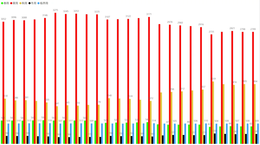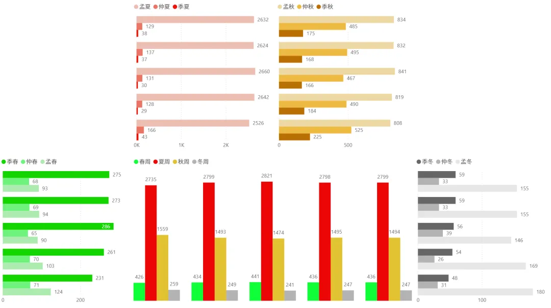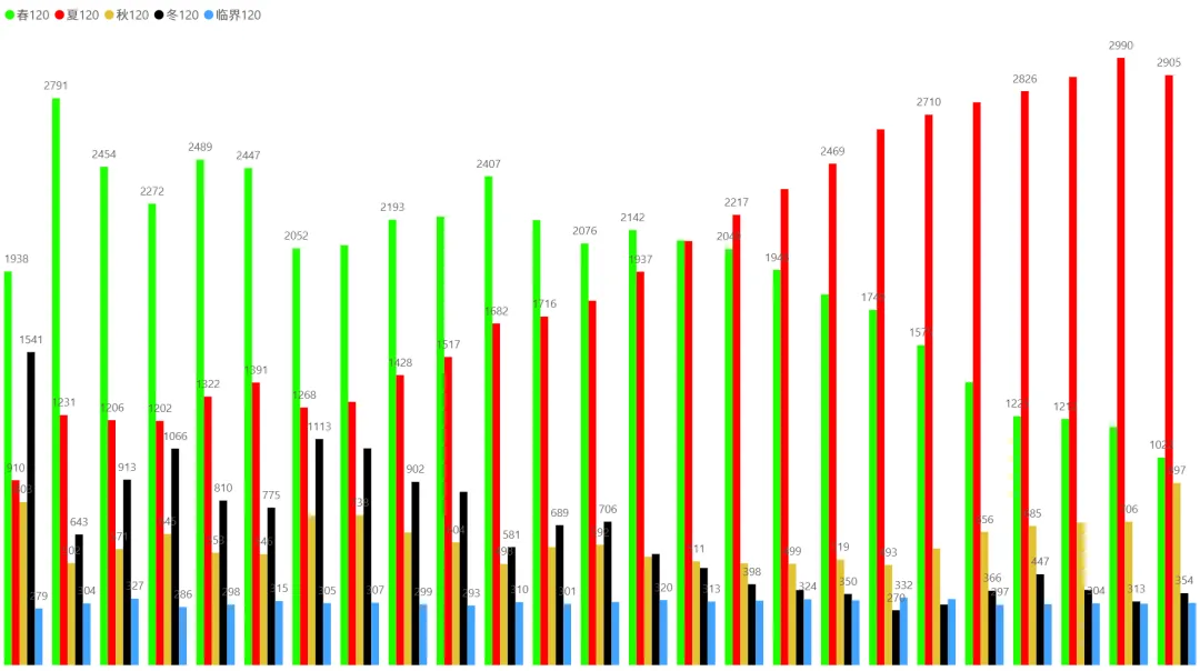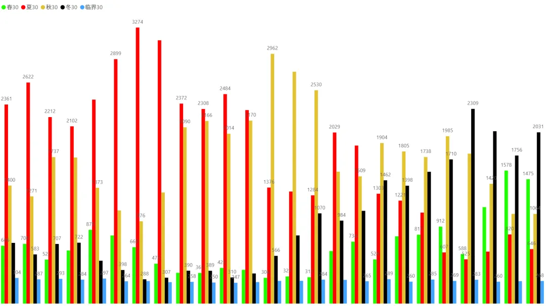 2、各时间周期四季分布趋势(1月5日~2月6日):