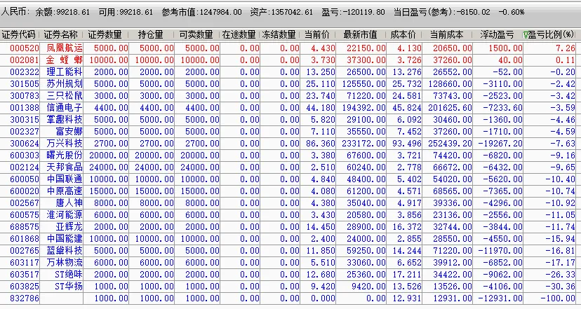 根据上个交易日复盘标的及今日盘中量化指标预警操作,目前持仓如下: