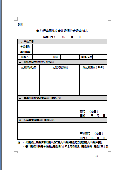 第九条 电力企业办理网络安全等级保护定级审核手续时,应当提交《电力行业网络安全等级保护定级审核表》(详见附件),含各定级对象的定级报告及专家评审意见。