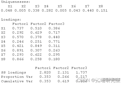 为公共因子,是不可观测的变量,他们的系数称为因子载荷。是特殊因子,是不能被前m个公共因子包含的部分。因子分析步骤如下: