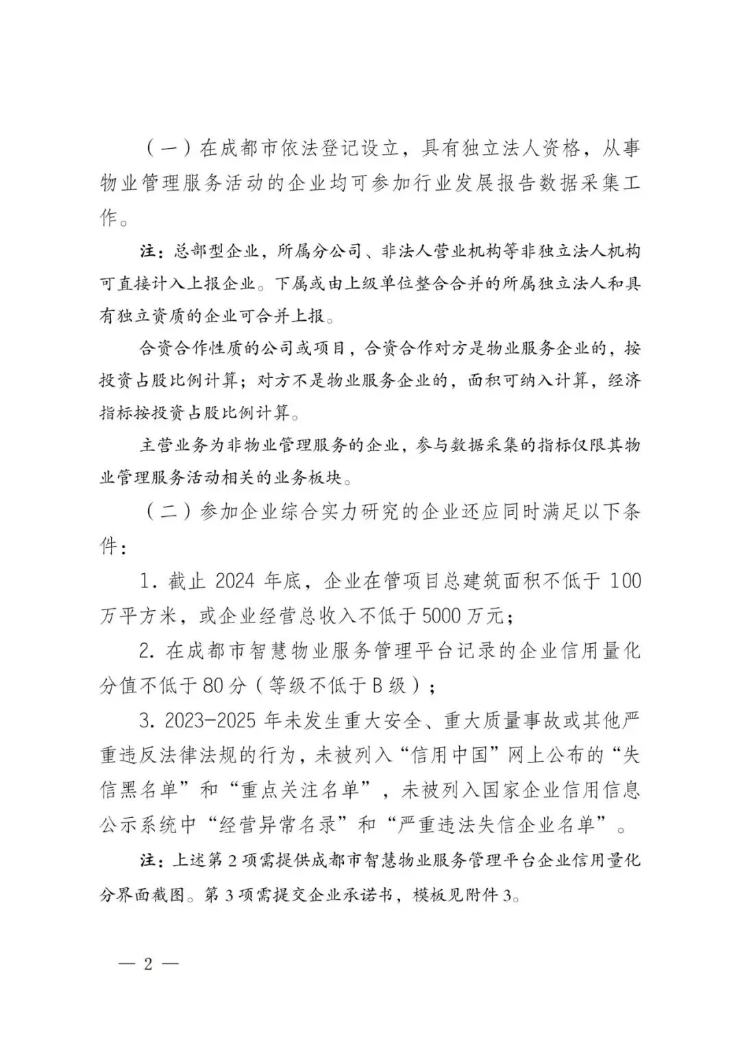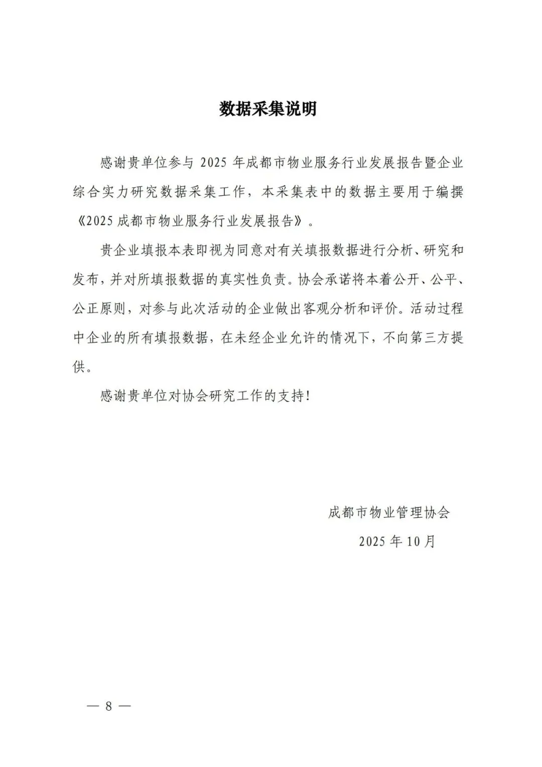 关于开展2025年成都市物业服务行业发展报告暨企业综合实力研究数据采集的通知